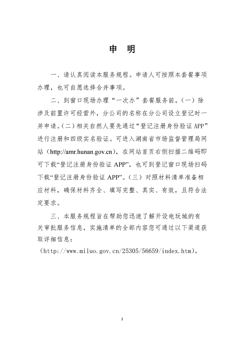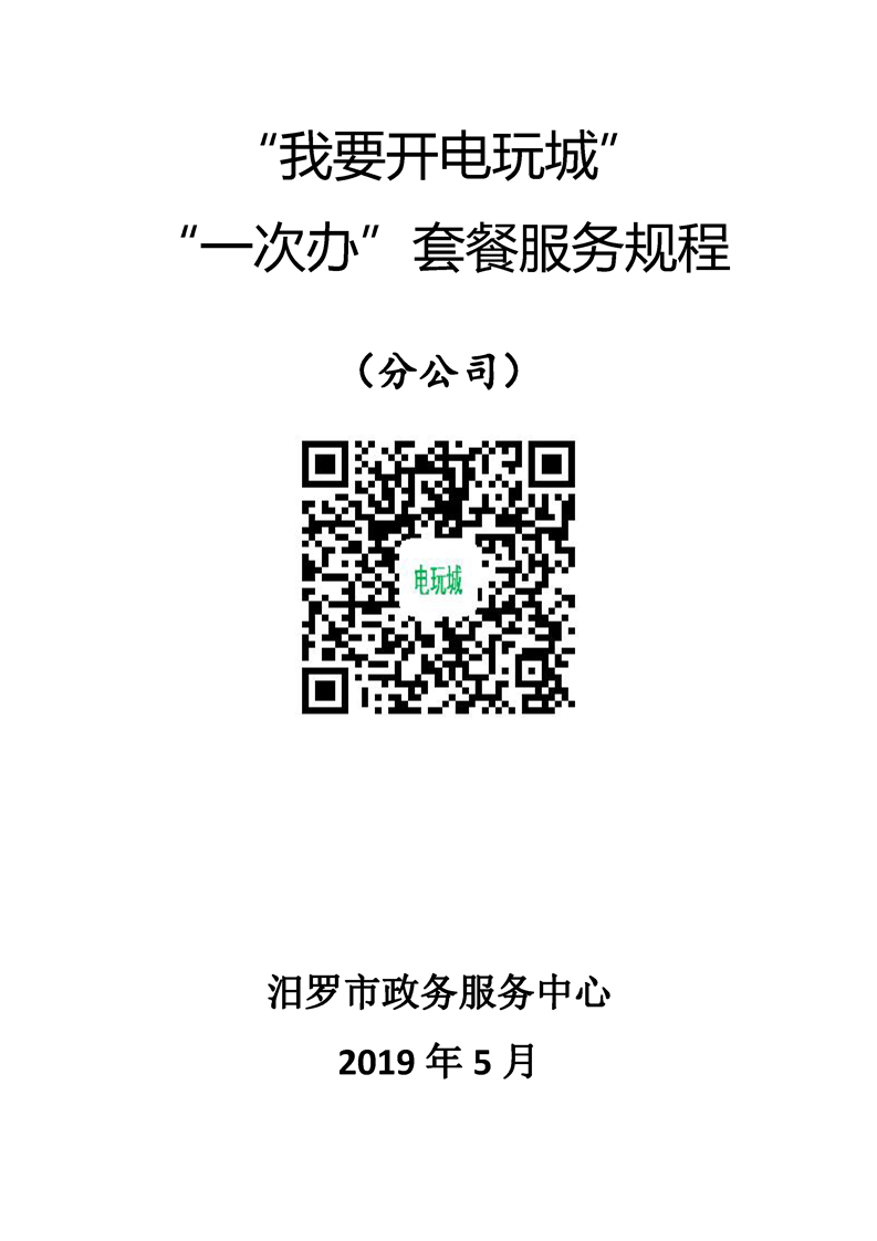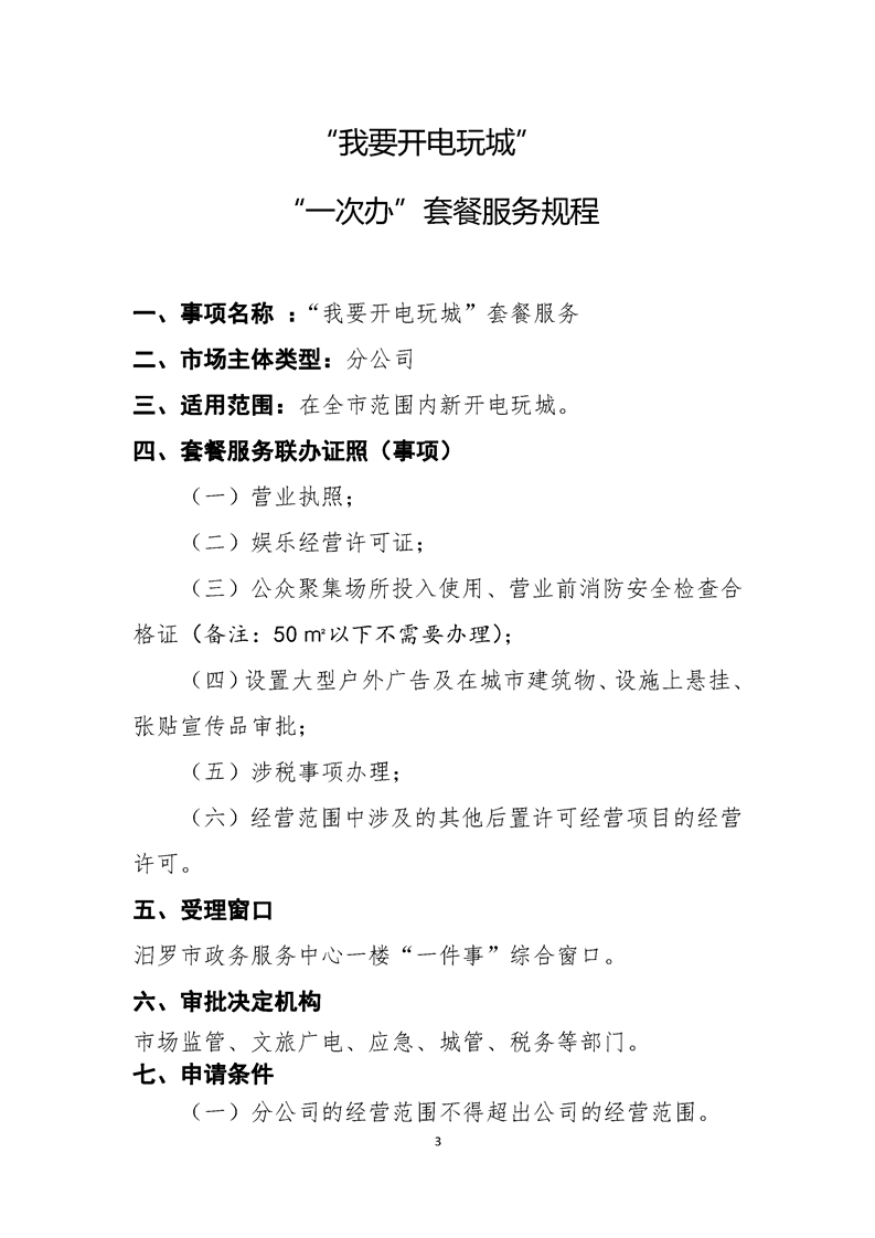 “我要开电玩城” 一次办”套餐服务规程 (分公司)