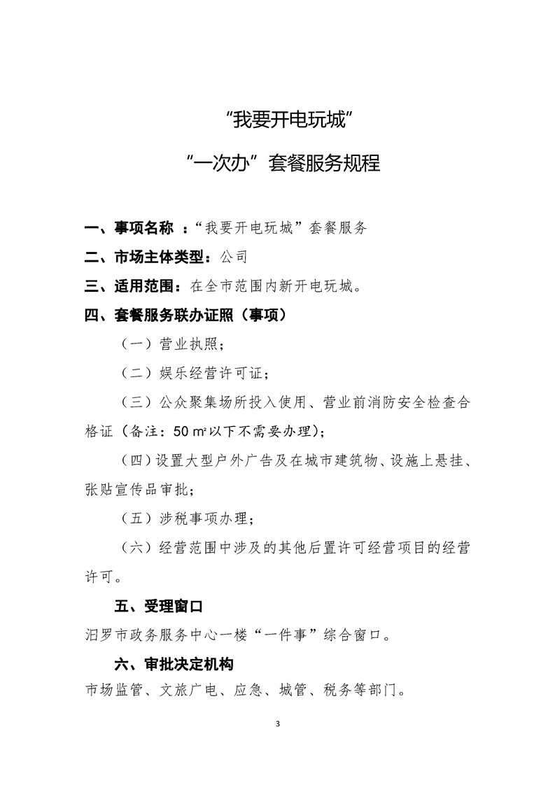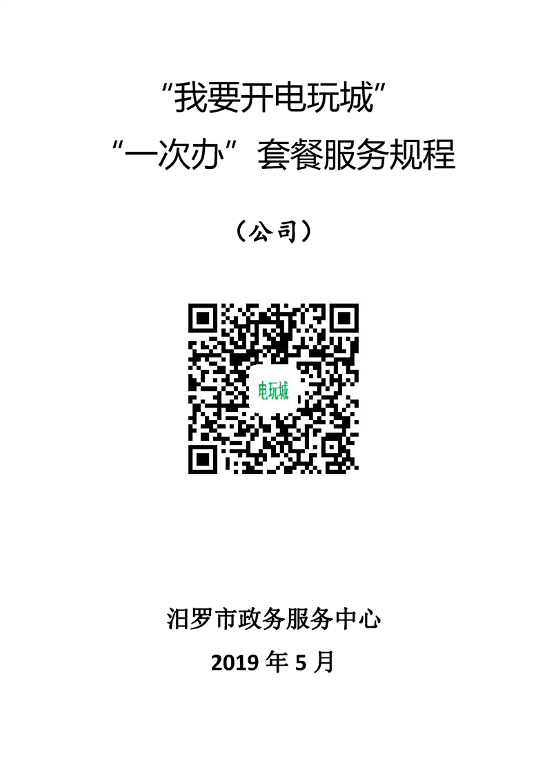 “我要开电玩城” 一次办”套餐服务规程 (公司)