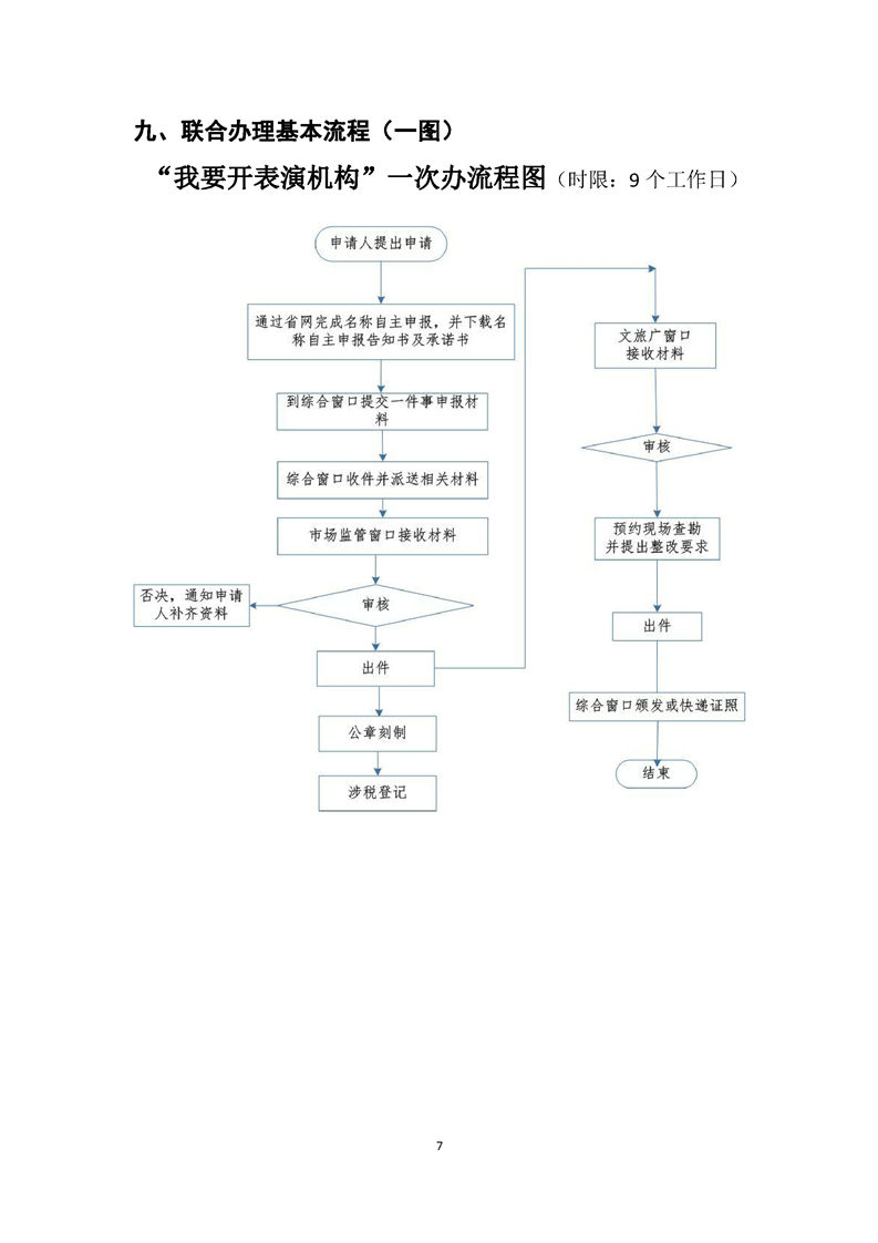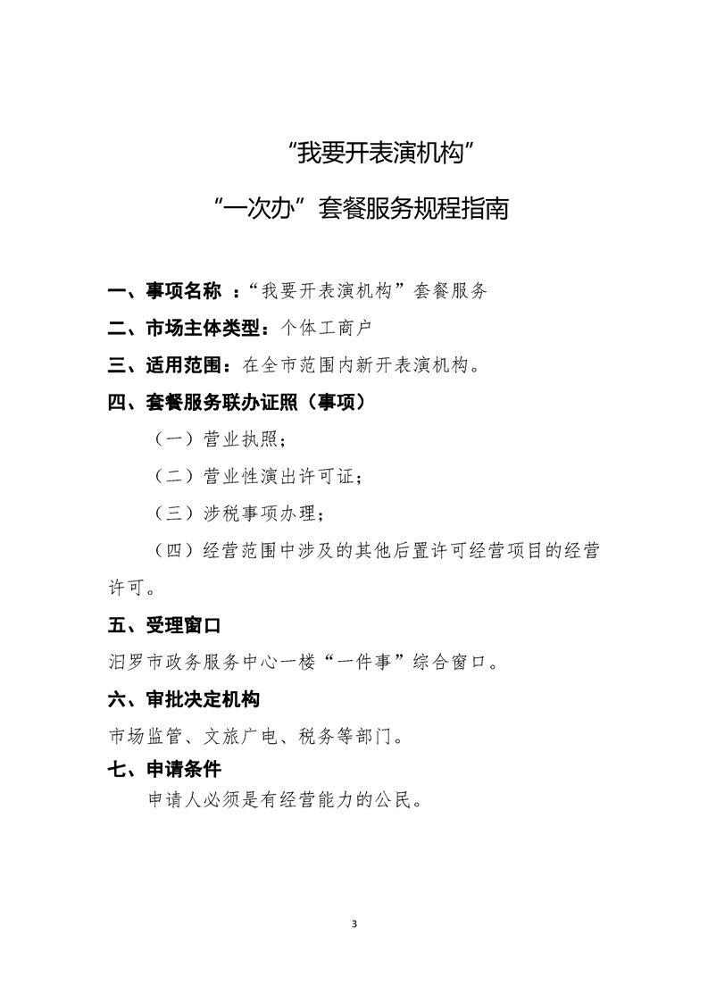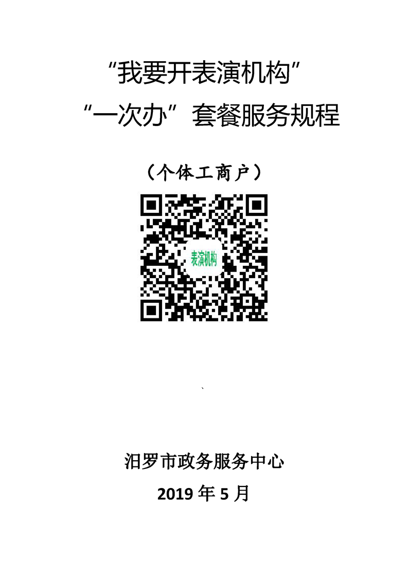 “我要开表演机构” 一次办”套餐服务规程 (个体工商户)