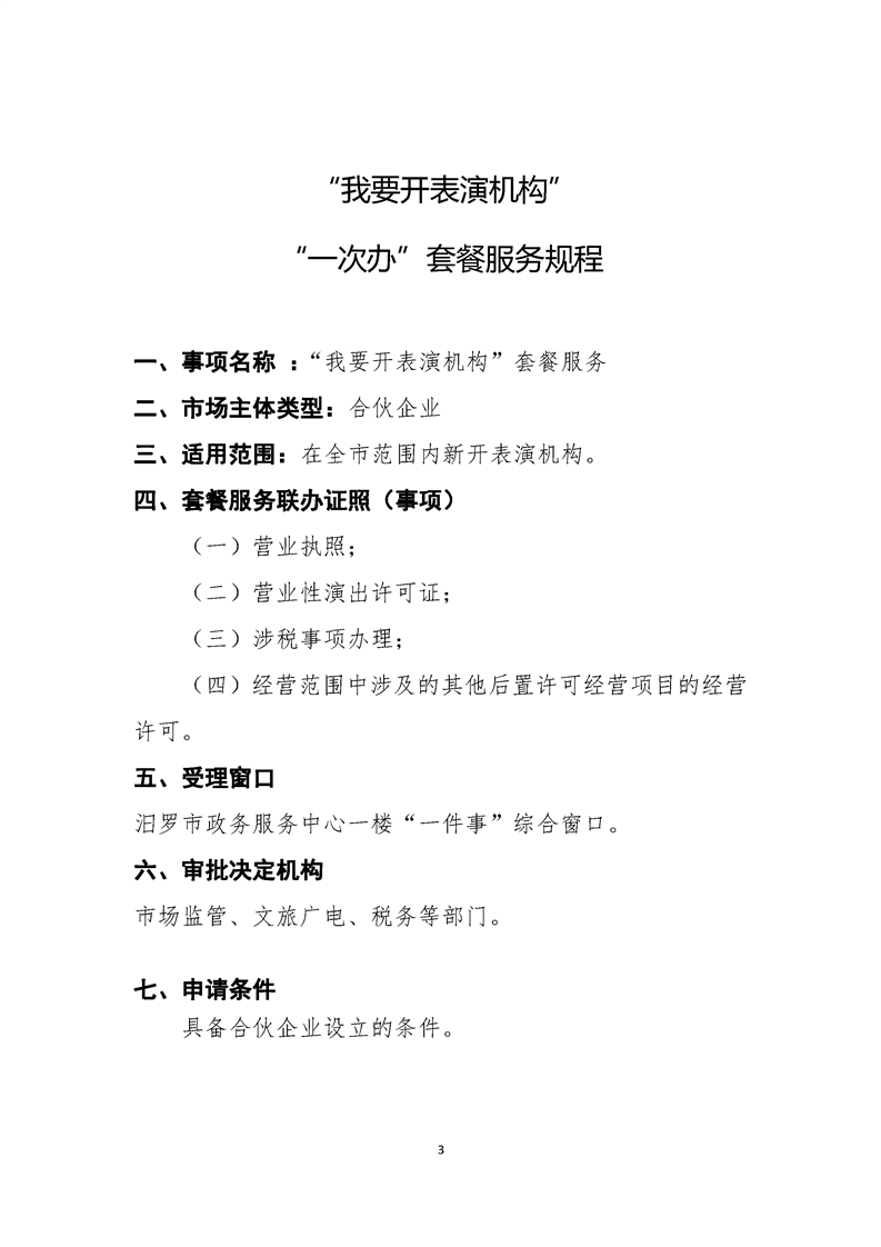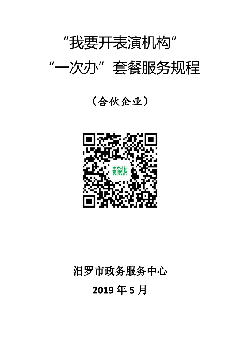 “我要开表演机构” 一次办”套餐服务规程 (合伙企业)