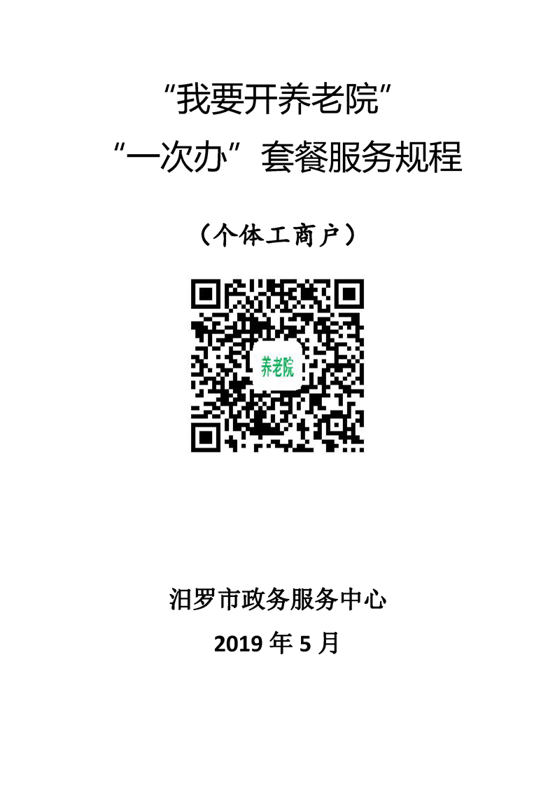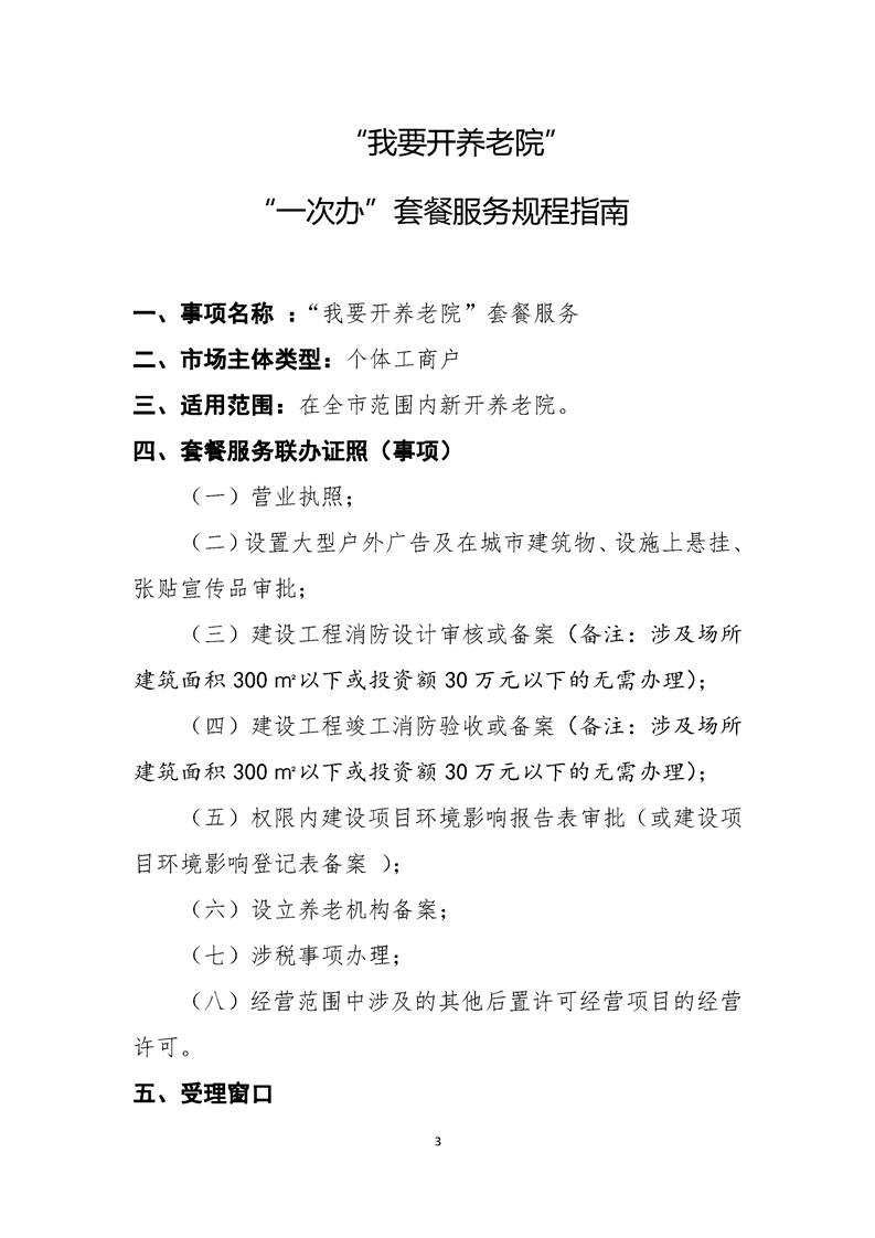 “我要开养老院” “一次办”套餐服务规程 (个体工商户)