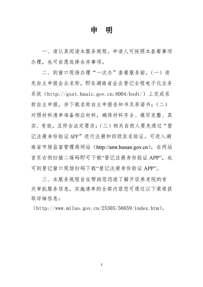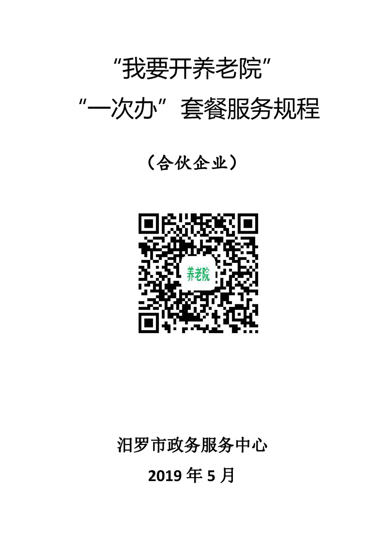 “我要开养老院” “一次办”套餐服务规程 (合伙企业)