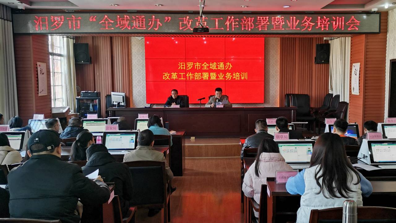 近日,汨罗市“全域通办”改革工作部署暨业务培训会在市行政审批服务局召开。据悉,这项改革全面落实之后,在岳阳工作的汨罗人,一些原本需要回汨罗市甚至回户籍所在乡镇才能办理的事项,在岳阳就可直接办理,是一项实实在在的便民工程。