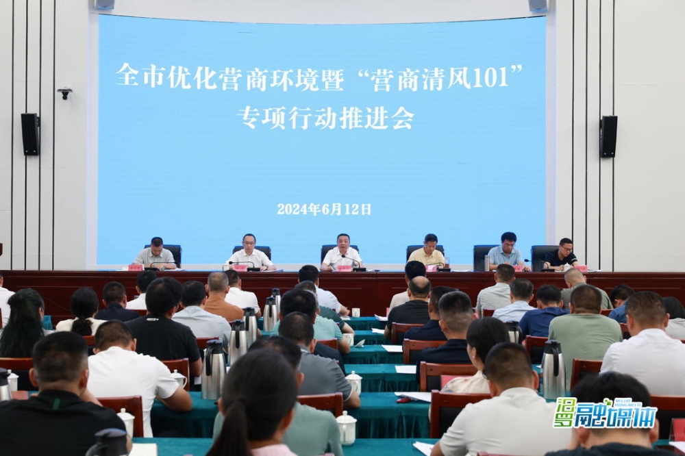 汨罗融媒体讯 (记者 夏凡 实习记者 陈旭玲 仇鼎) 6月12日下午,汨罗市召开优化营商环境暨“营商清风101”专项行动推进会,深入贯彻习近平总书记考察湖南重要讲话和重要指示精神,认真落实省委省政府、岳阳市委市政府工作部署,深入推进专项行动,进一步优化全市营商环境。市委书记朱平波出席并讲话,市委副书记、市长林恒求讲评汨罗市优化营商环境工作,市委副书记、统战部长叶罡主持会议,市级领导何厚德、许义中、易万出席。
