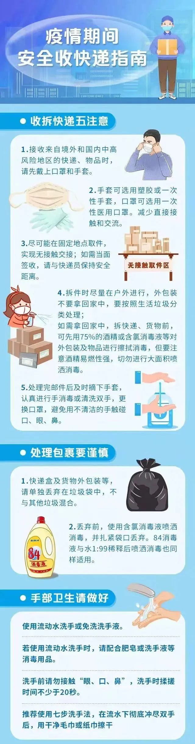 还要提醒的是,针对杭州某快递公司中转场多名快递员感染的情况,建议广大市民在接收快递的时候,务必做到“五注意”,谨慎处理包裹外包装,并及时科学洗手。