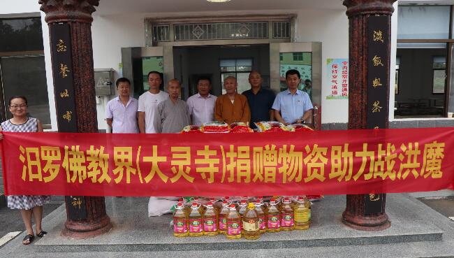 汨罗融媒体讯(记者 彭晓)7月16日,大灵寺释慈云法师一行来到罗江垸防汛指挥部,看望慰问奋斗在值守第一线的人员,并捐赠2吨大米和20壶食用油。