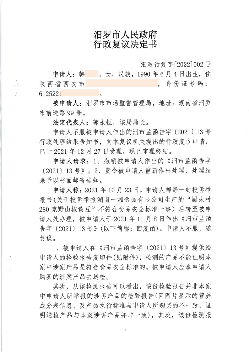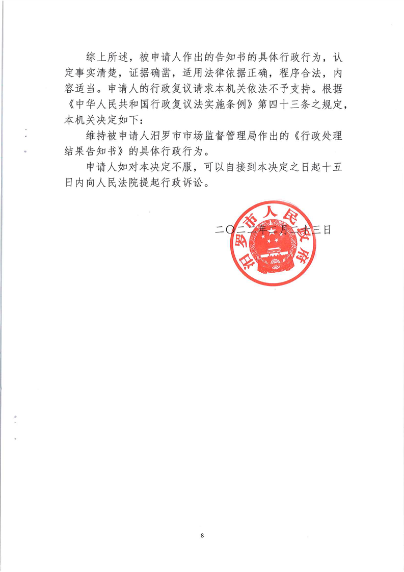 行政复议终止决定书(汨政行复字[2022]002号)