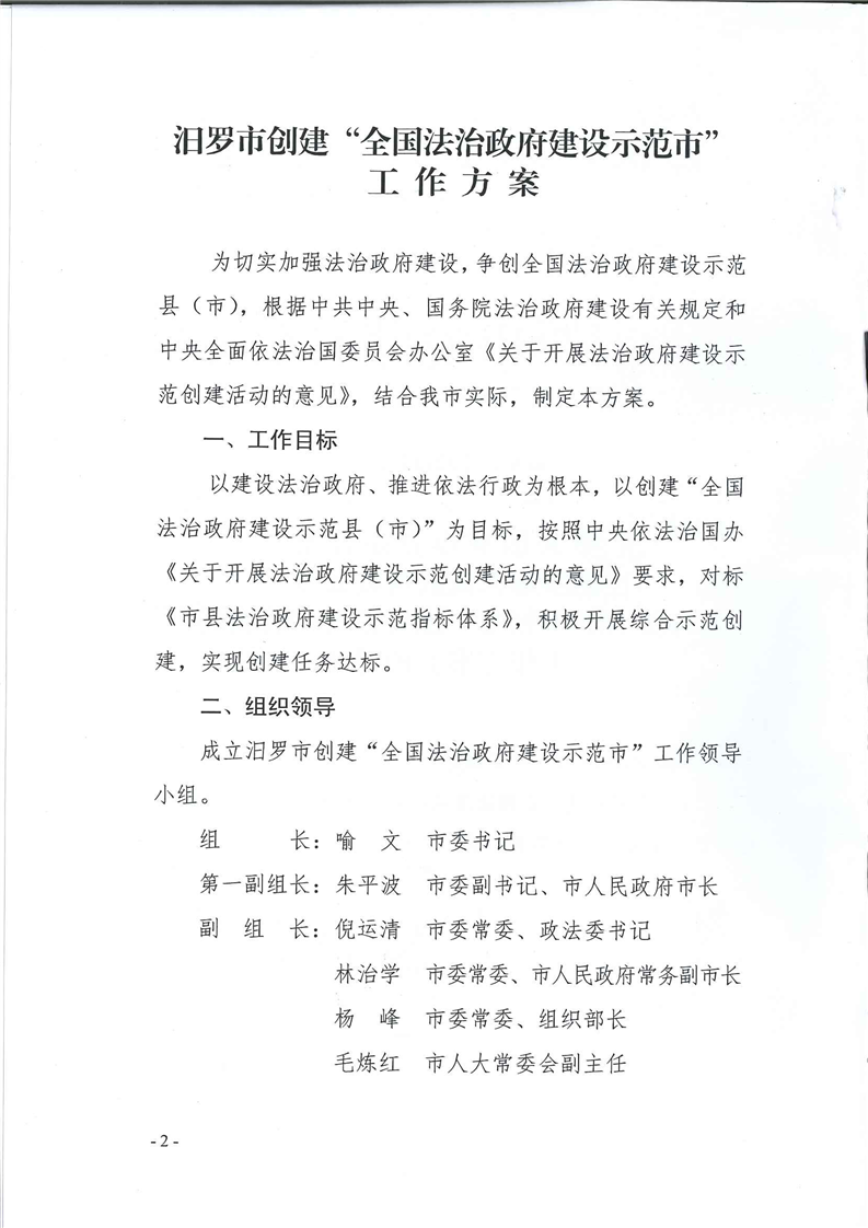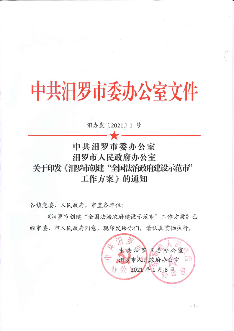 《汨罗市创建“全国法治政府建设示范市”工作方案》的通知