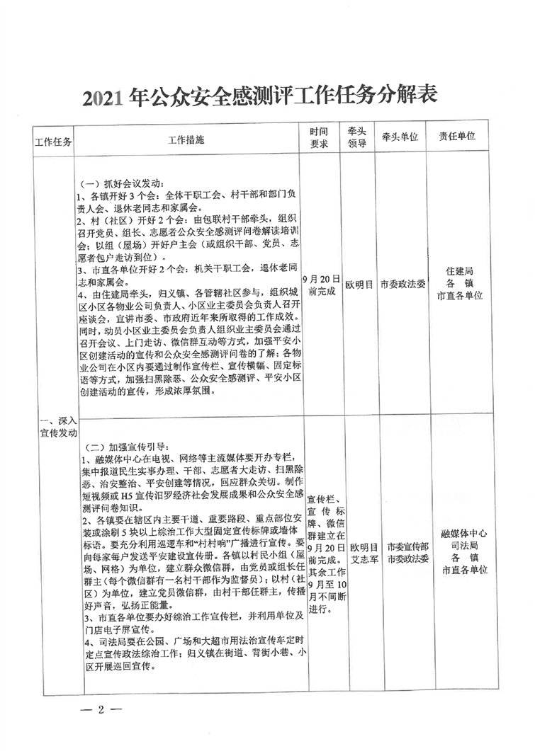 关于印发《2021年公众安全感测评工作任务分解表》的通知