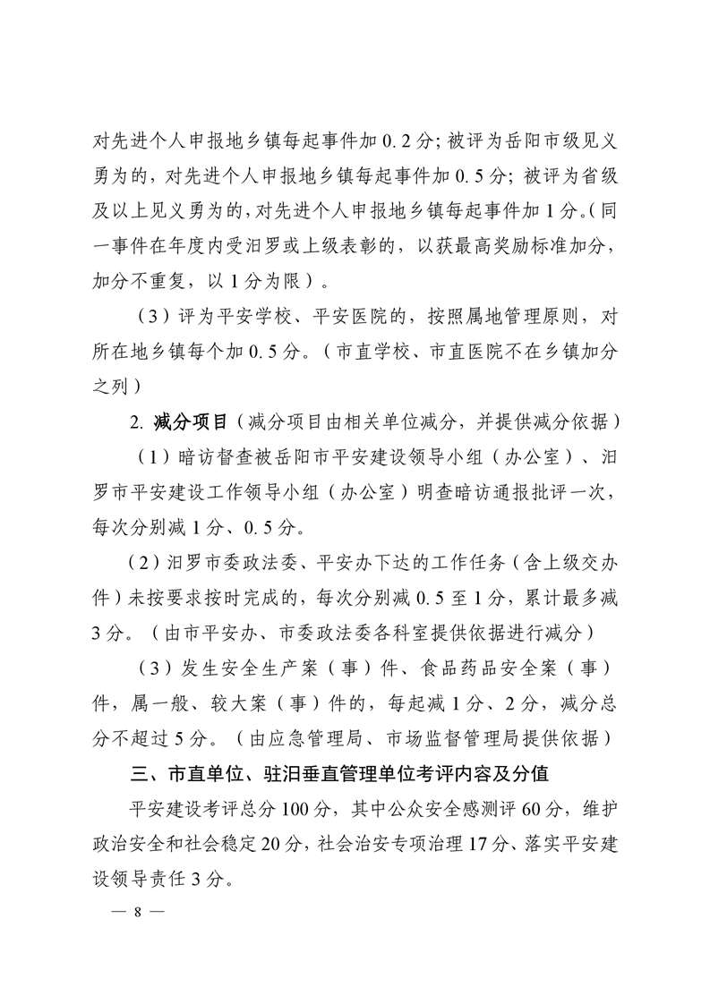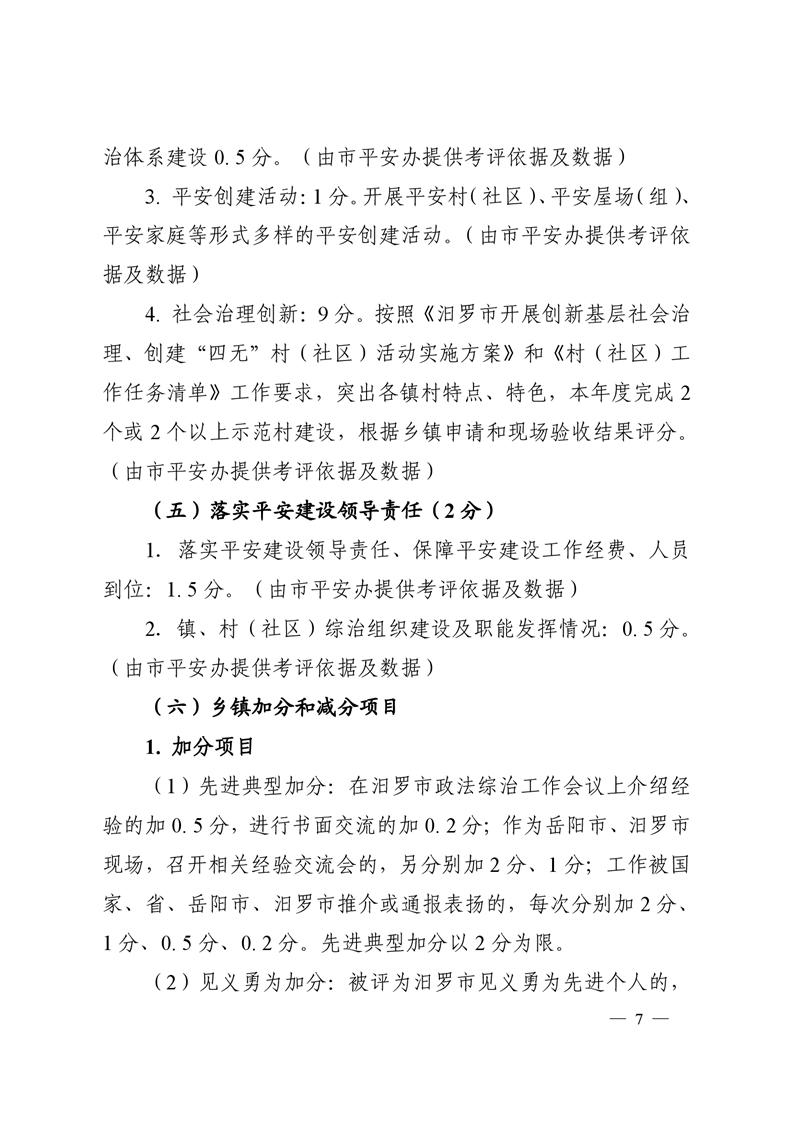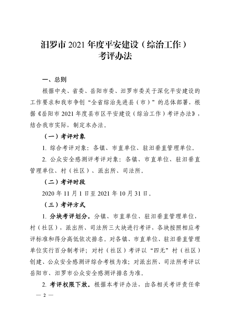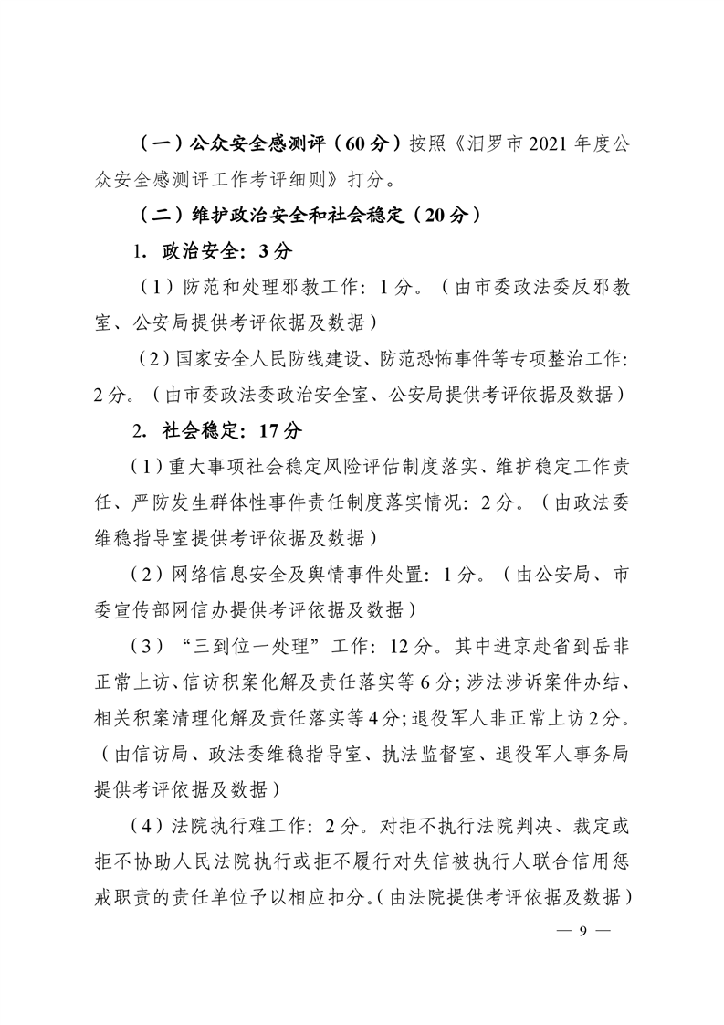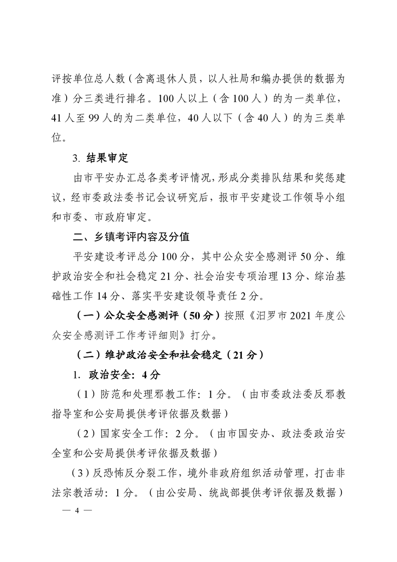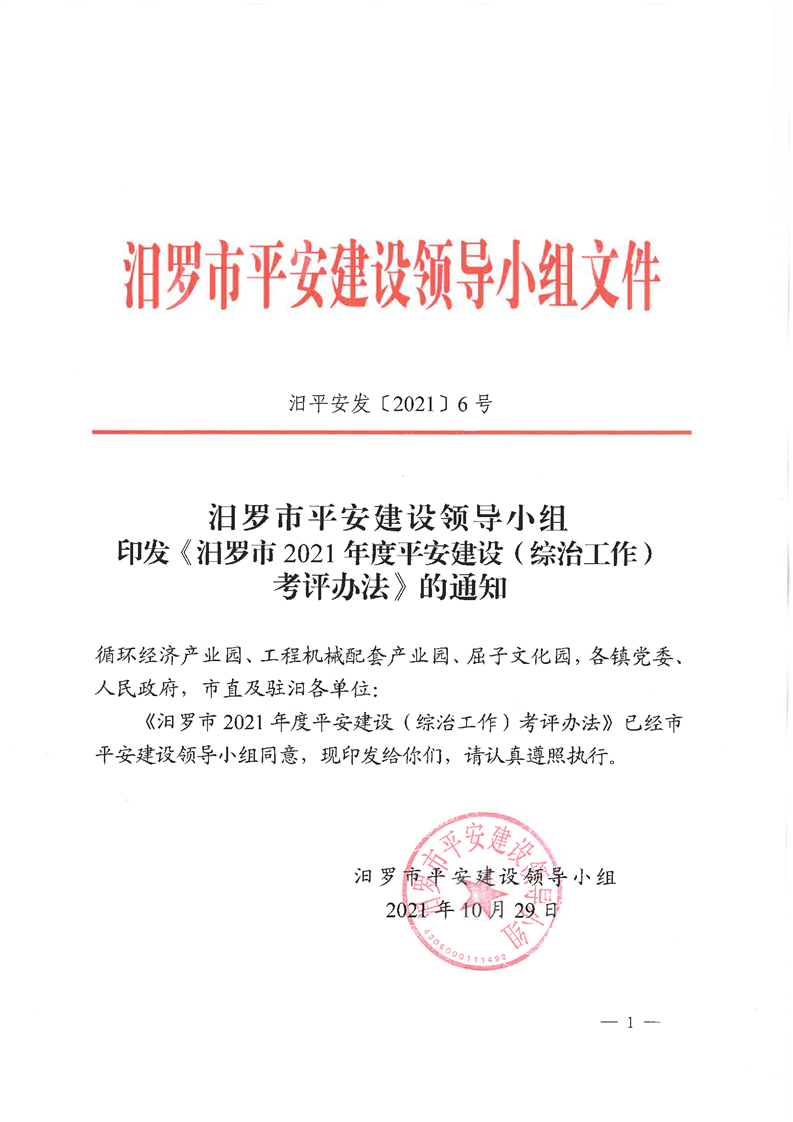 印发《汨罗市2021年度平安建设(综治工作)考评办法》的通知
