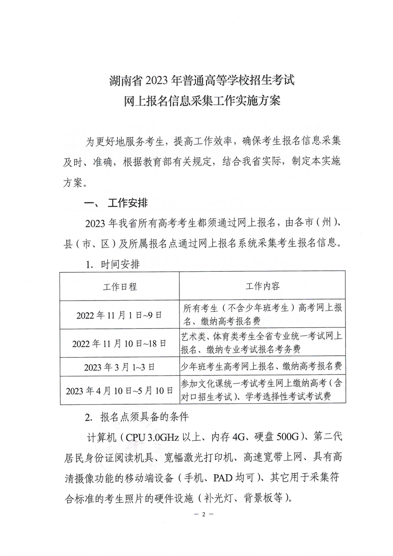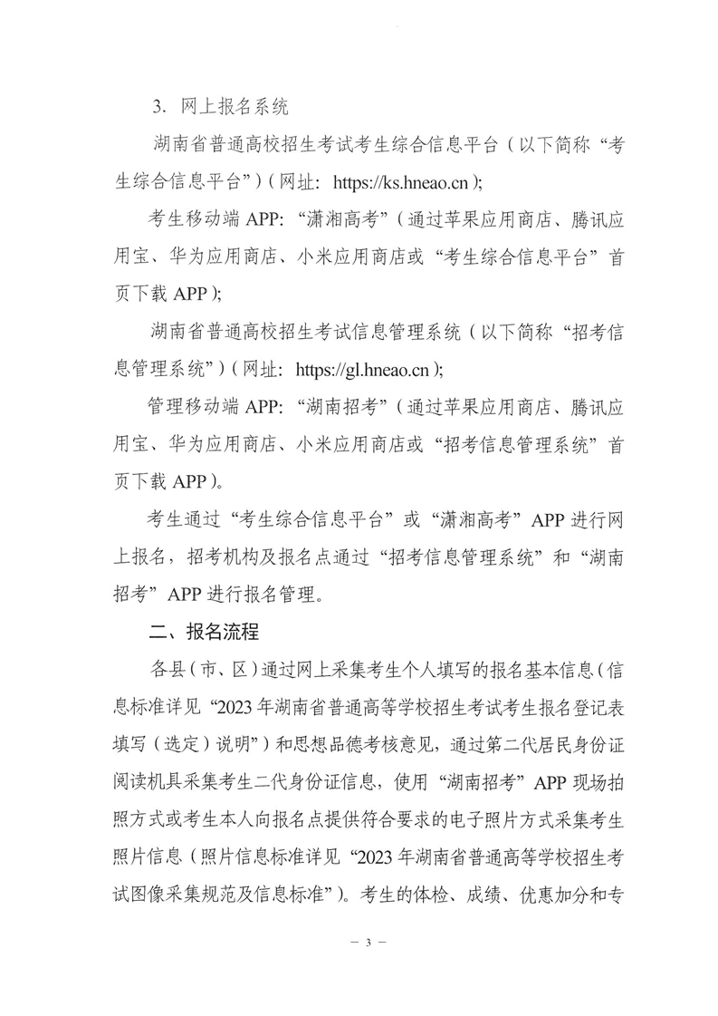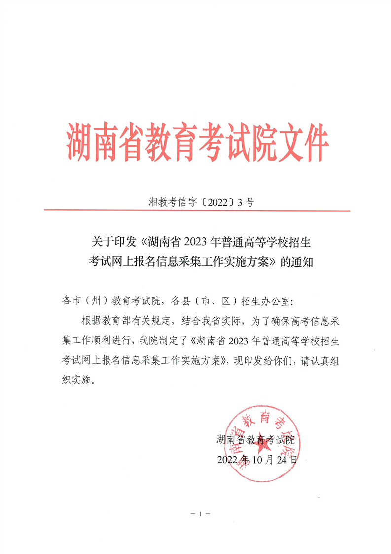 关于印发《湖南省2023年普通高等学校招生报名信息网上采集工作实施方案》的通知湘教考信字〔2022〕3号