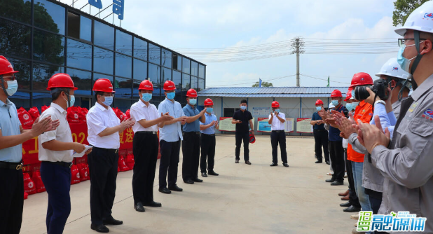 "项目竣工投产指日可待,感谢大家的辛勤付出,疫情期间一定要做好个人防护,注意施工安全和防暑降温……"头顶炎炎烈日,徐新楚一行来到项目工地,给一线施工人员送去矿泉水、王老吉、清凉包、口罩等防暑防疫物资,对他们不惧酷暑、奋战工地表示亲切慰问和崇高敬意。随后,他深入现场实地踏看,逐一了解项目推进中遇到的实际困难,与相关职能部门研究地下临时水系安全、电气路网配套建设、税费政策减免优待等方面问题的解决办法。据了解,正威汨罗项目一期主厂房已进入扫尾,工人招聘培训正有序推进,生产设备将于近期陆续安装,正全力以赴冲刺9月底一期项目正式投产目标。