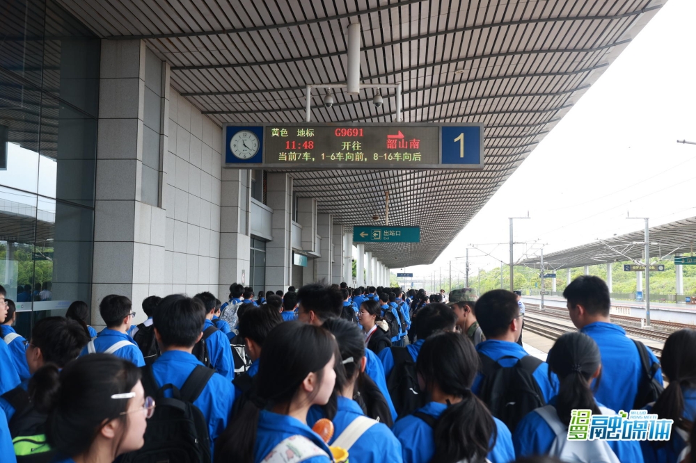 汨罗融媒体讯(记者 夏凡)“韶山,我们来了!”4月20日临近中午,高铁汨罗东站人潮涌动,来自平江五中、七中的1100多名学生在老师和教练的带领下,依次登上前往韶山南的G9691专线,开启红色之旅。