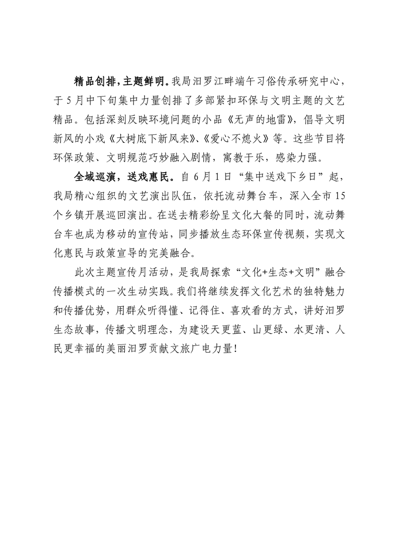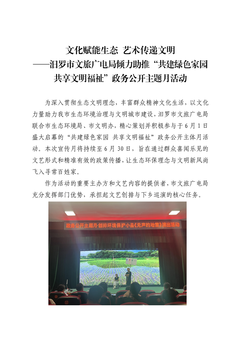 汨罗市文旅广电局倾力助推“共建绿色家园 共享文明福祉”政务公开主题月活动