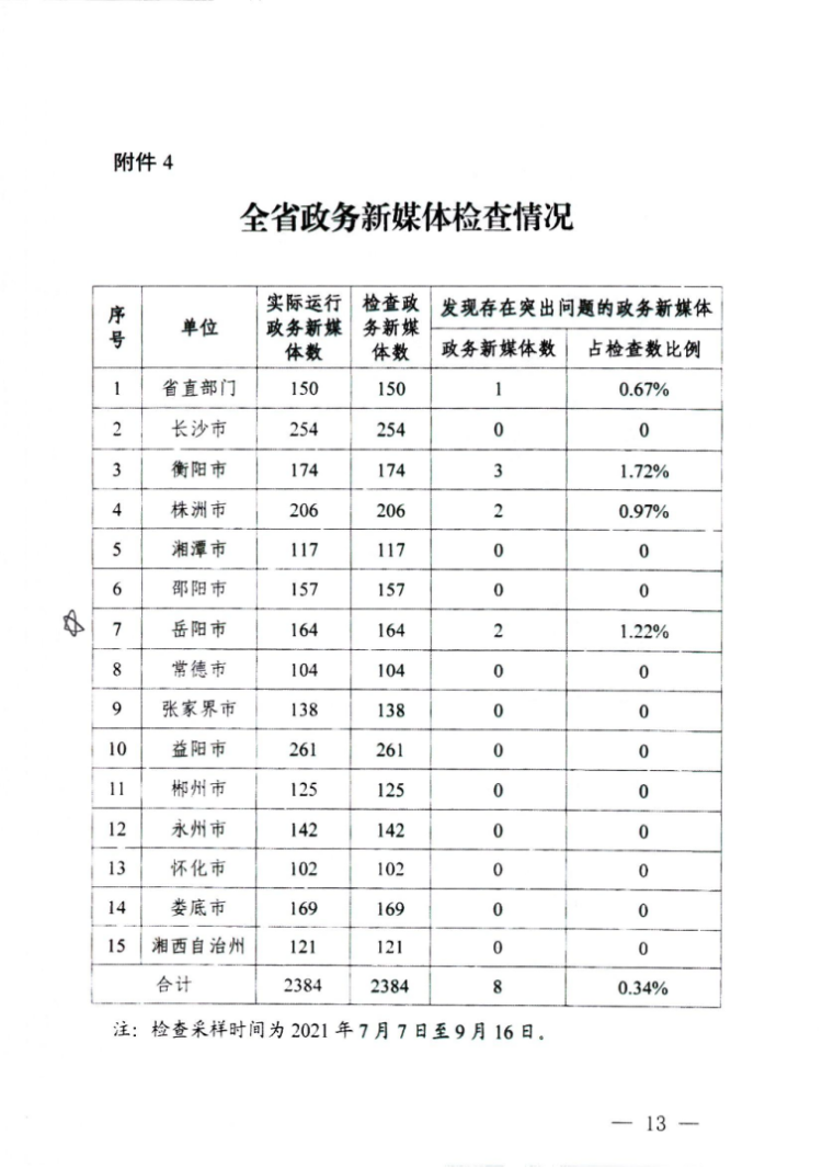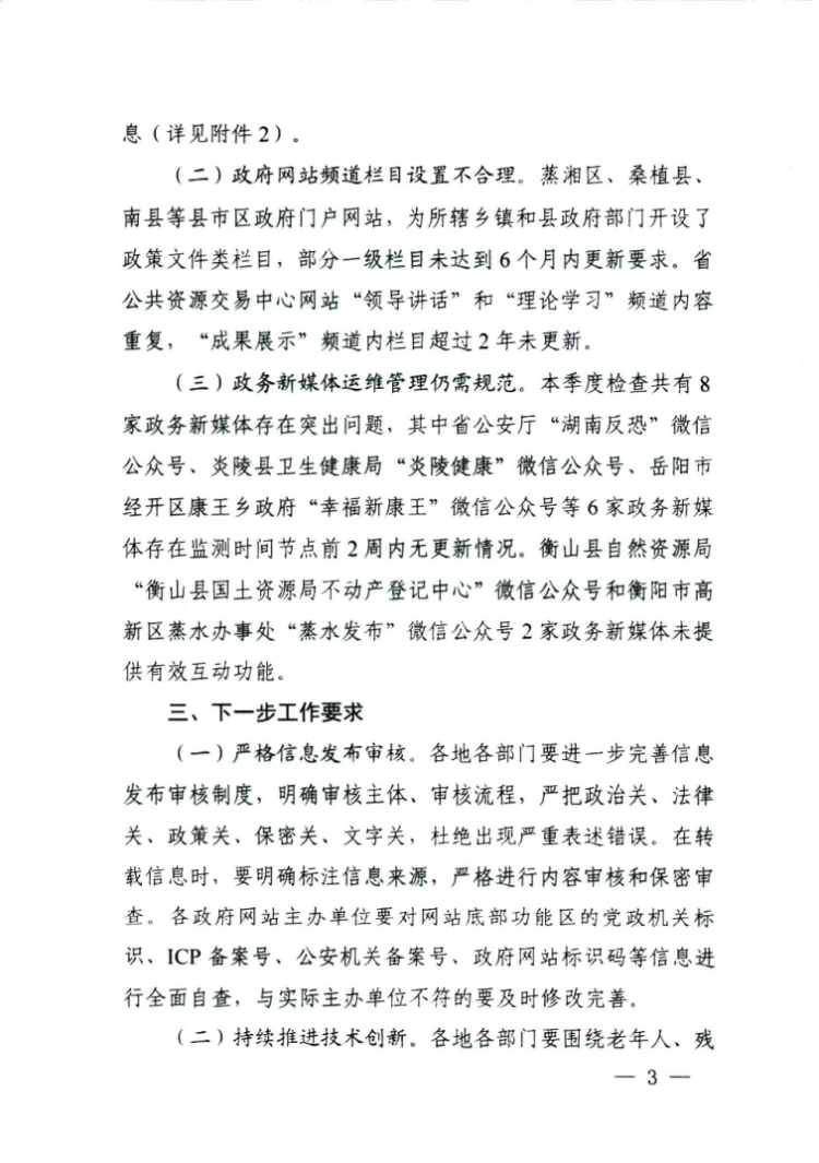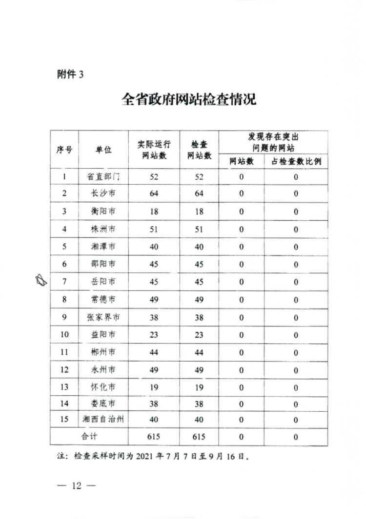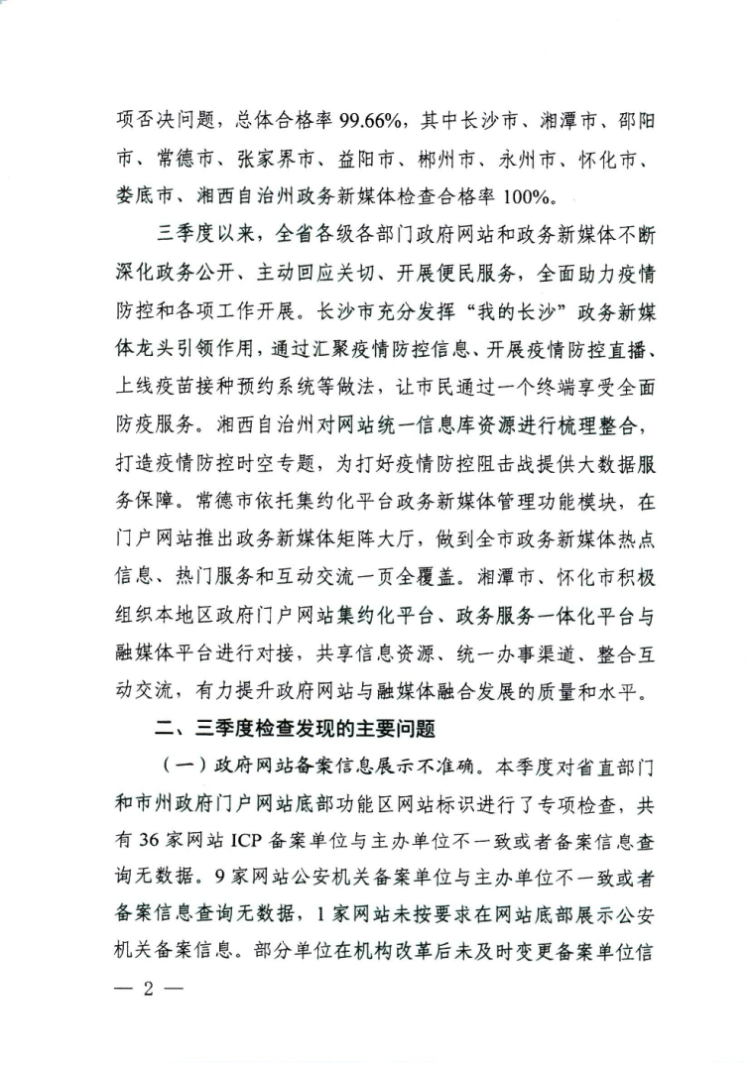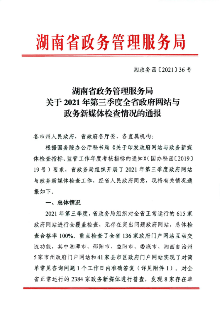 关于2021年第三季度全省政府网站与政务新媒体检查情况的通报