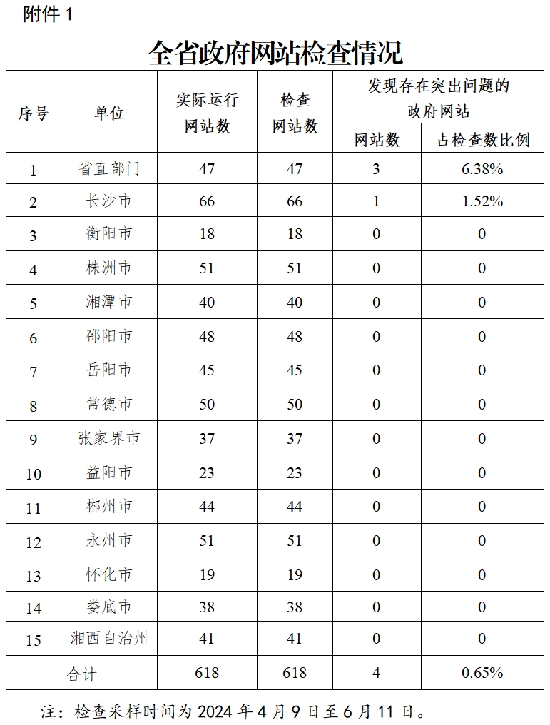湖南省数据局关于2024年第二季度全省政府网站与政务新媒体检查情况的通报