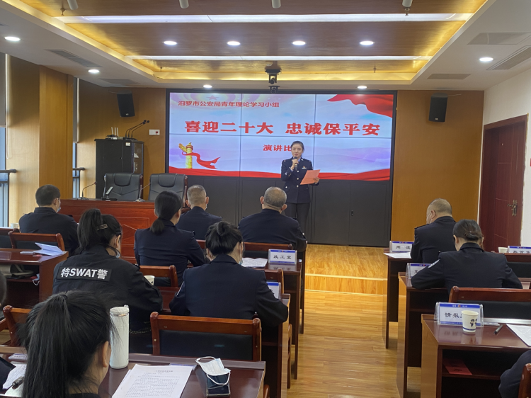 汨罗融媒体讯(记者 张慧 通讯员 谢朝霞)10月12日,汨罗市公安局举办“喜迎二十大 忠诚保平安”主题演讲比赛,12名选手分享身边的榜样故事,激励全警以奋发有为的昂扬姿态投入到公安工作中。
