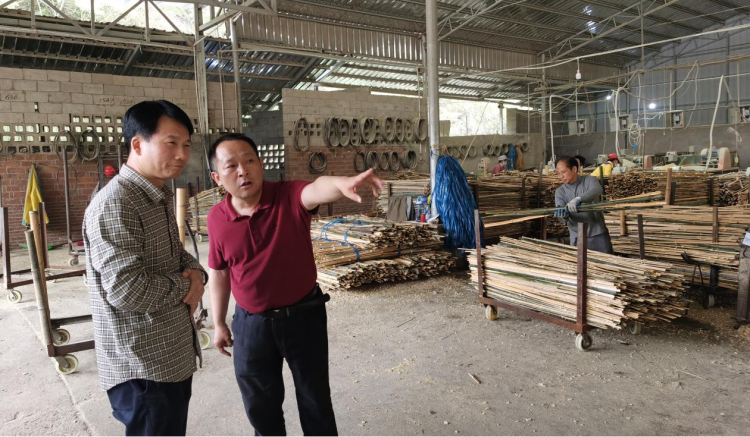 易贵明在湖南旭晨竹制品有限公司生产车间调研