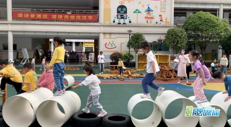 汨罗市幼儿园匠心创设游戏乐园,打造“慧玩空间”,目前拥有约4000平方米的小树林与大草坪。沙水池、滚筒乐、趣草坡、野趣营……孩子们在开放、交互的游戏环境中,体验乐趣,表达见解、完善规划,发挥自身潜能。同时还设有赛龙舟、踩高跷、故事会、制作粽子等游戏项目,将汨罗人文、民俗特色巧妙自然地融入游戏,让孩童们在亲近自然的同时体验着传统民俗文化。现场观摩时,调研组专家与孩子们亲切互动,拍照记录,对汨罗学前特色教育留下了深刻印象。