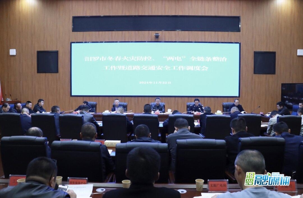汨罗融媒体讯(记者 姜文宇)11月22日下午,汨罗市冬春火灾防控、“两电”全链条整治工作暨道路交通安全工作调度会召开,听取相关情况汇报,研究部署后段工作。市委常委、常务副市长杨盛,副市长、市公安局局长李岳星出席并讲话。相关部门单位负责人,各镇镇长、各街道办事处主任,循环园、飞地园、部分重点企业负责人参加。