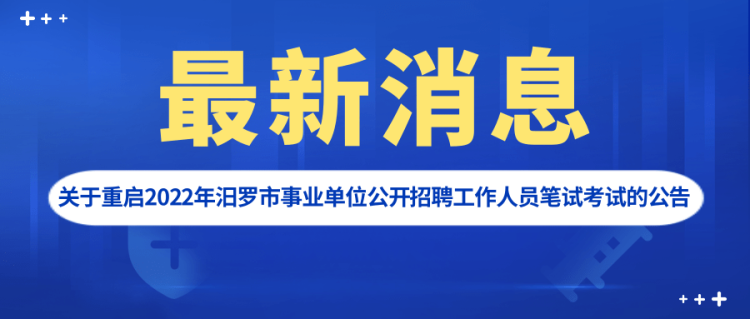 最新消息‖关于重启2022年汨罗市事业单位公开招聘工作人员笔试考试的公告
