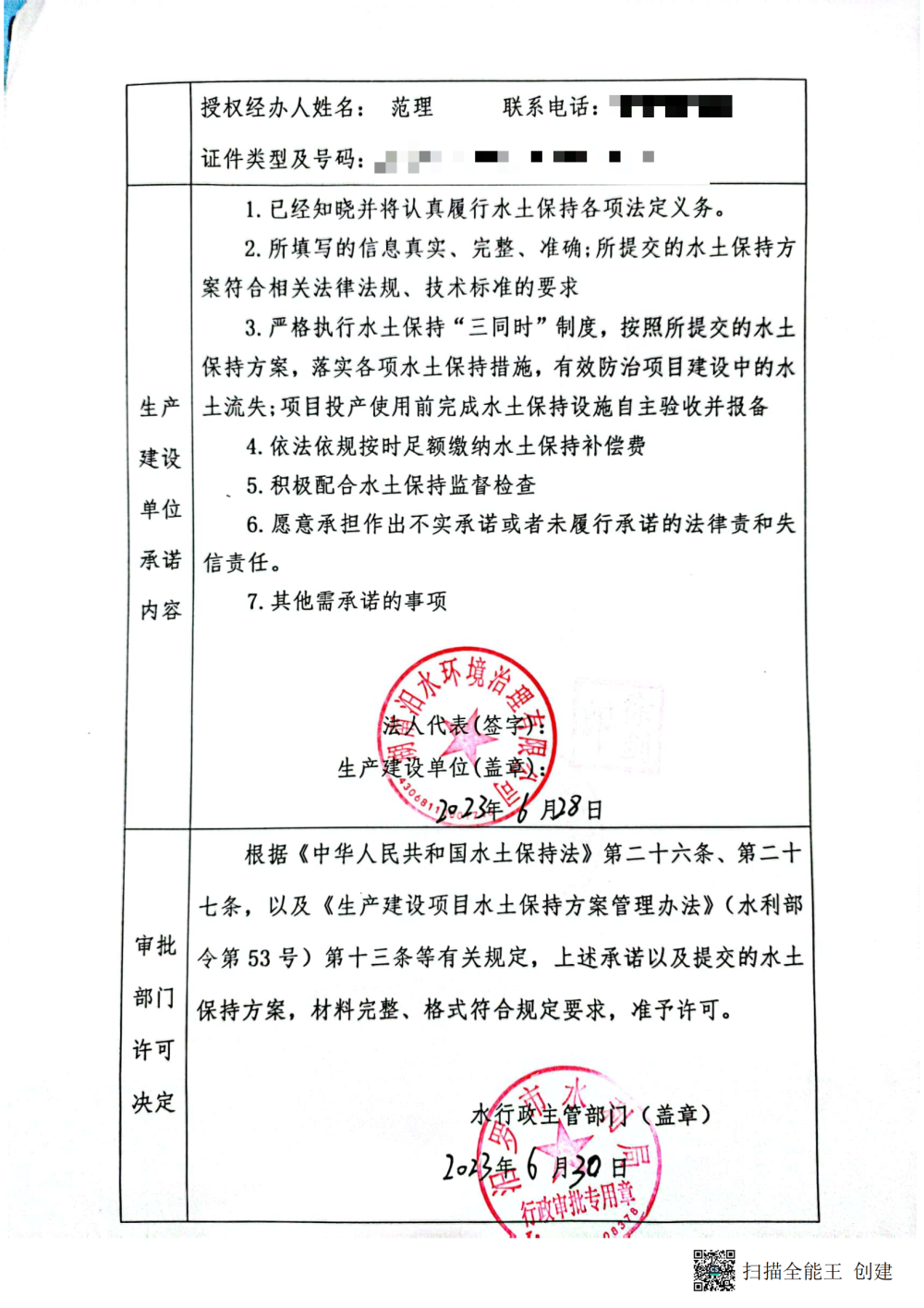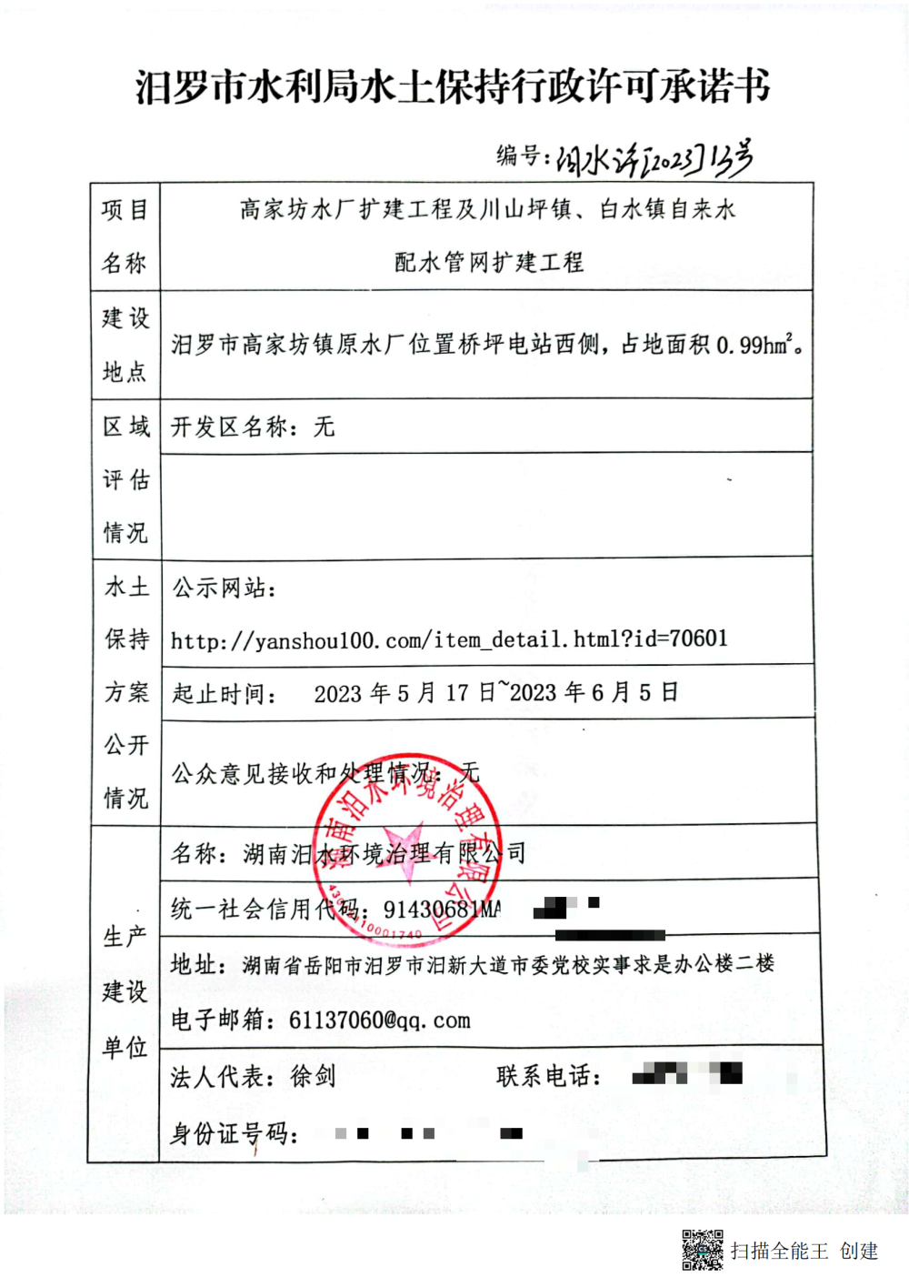 高家坊水厂水土保持行政许可承诺书