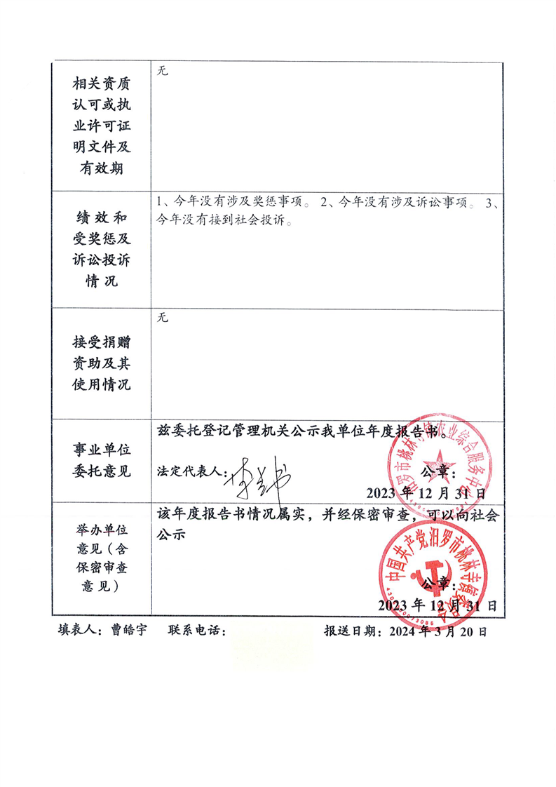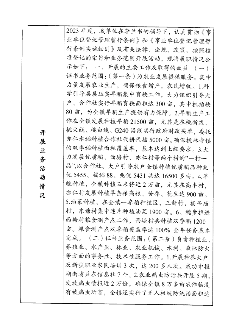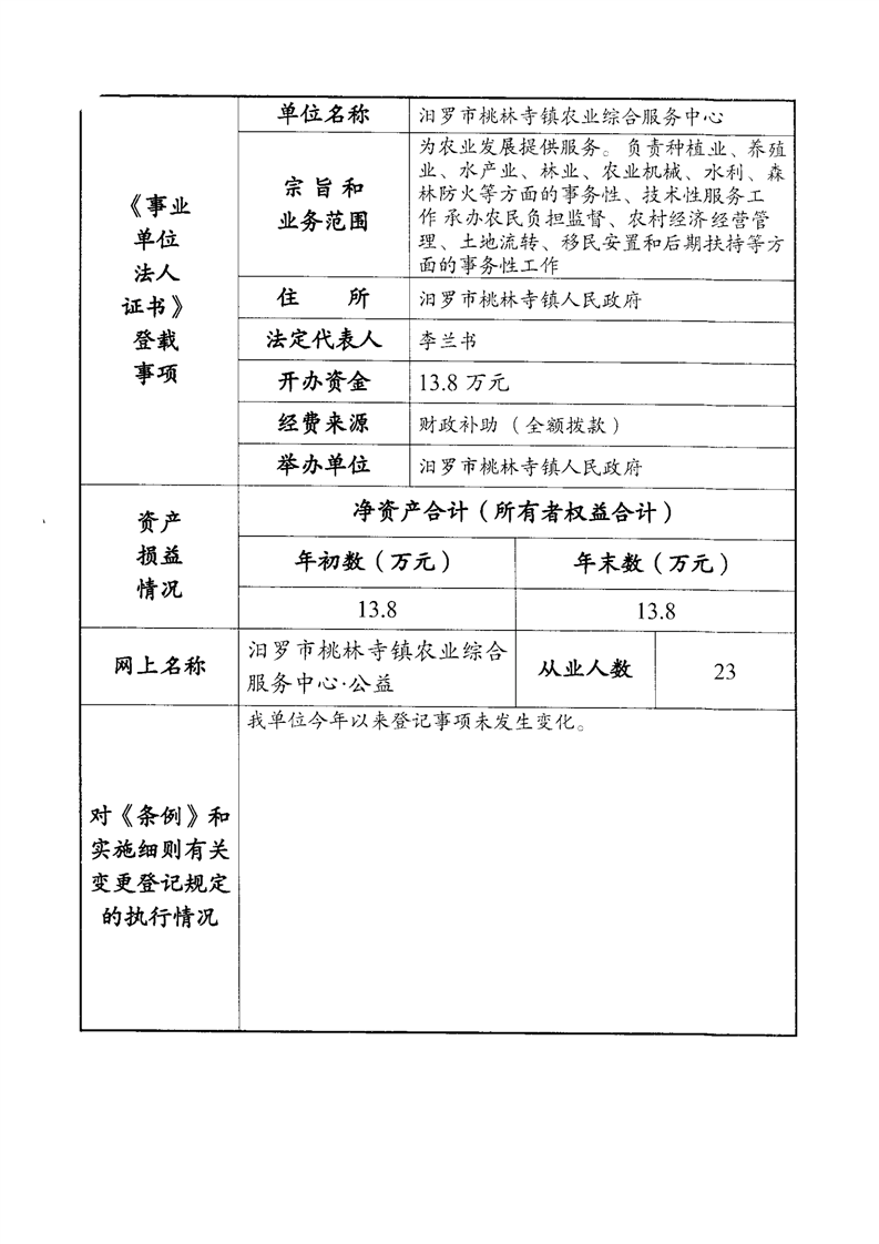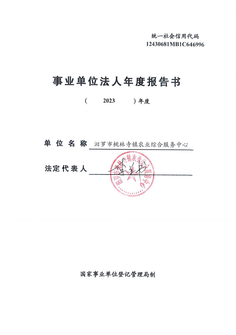 汨罗市桃林寺镇农业综合服务中心法人年度报告书