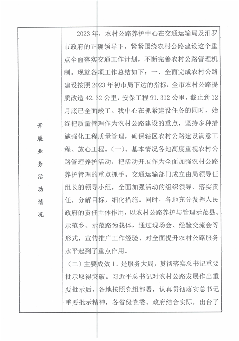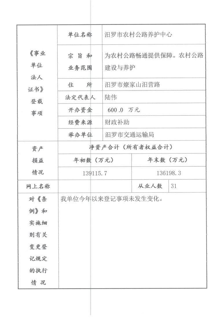 汨罗市农村公路养护中心事业单位法人年度报告书