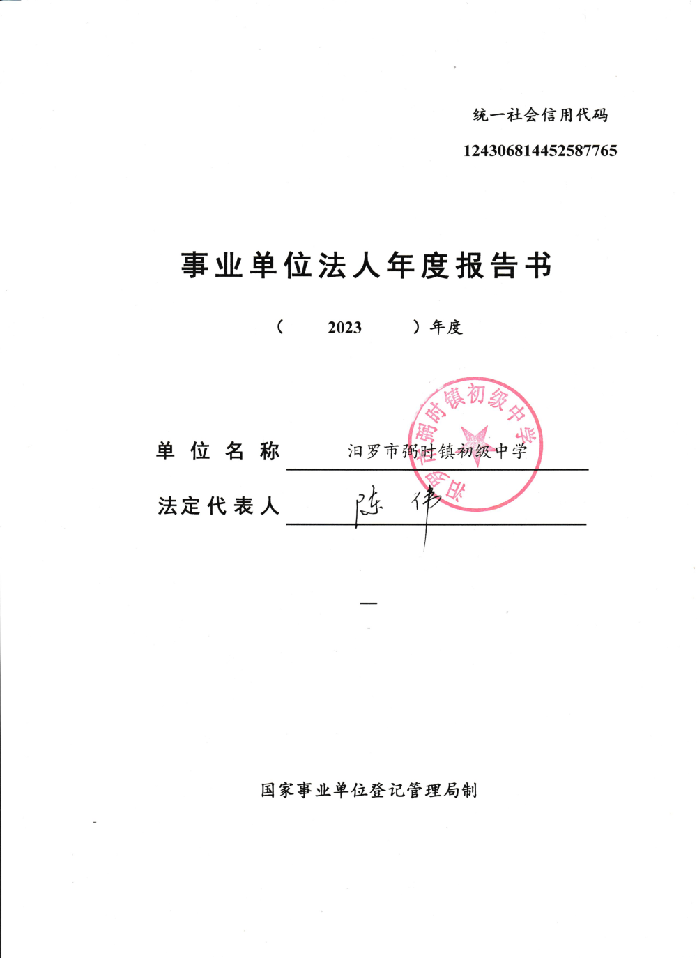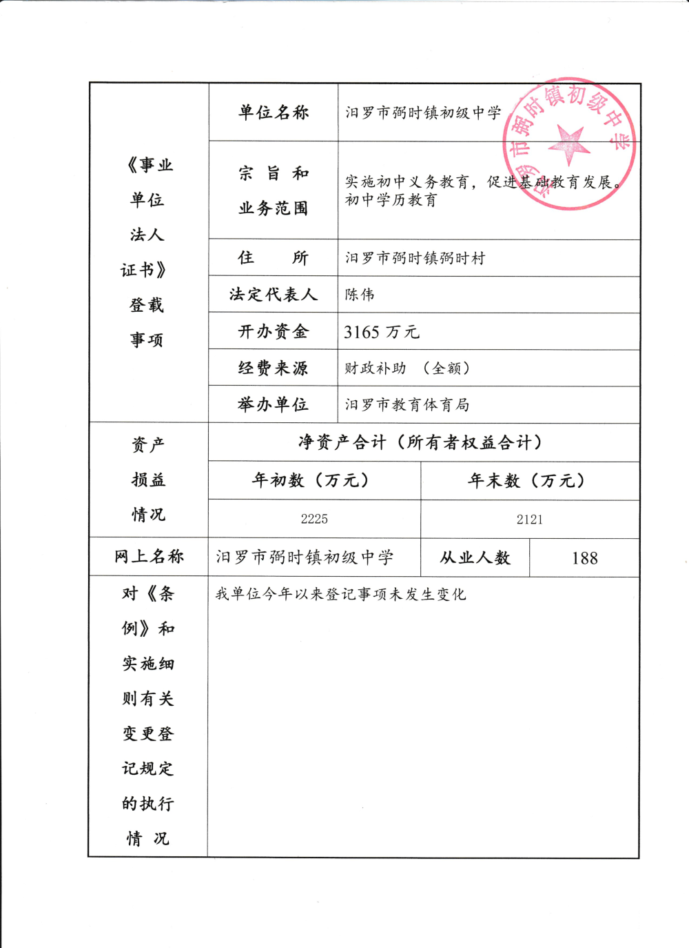 汨罗市弼时镇初级中学事业单位法人年度报告书