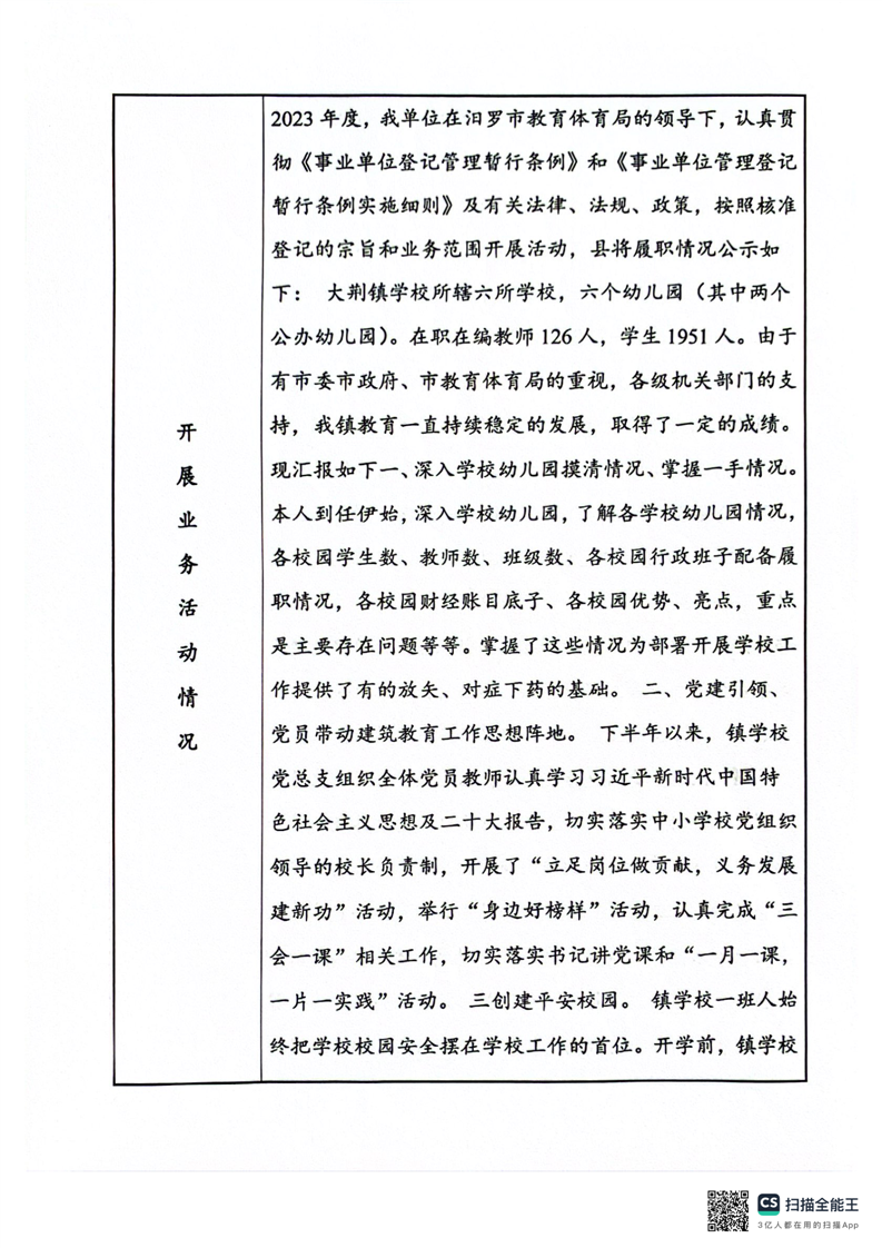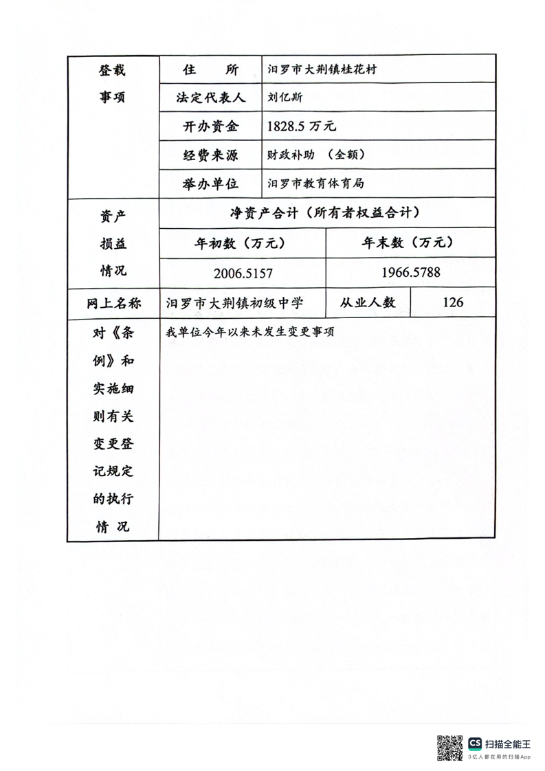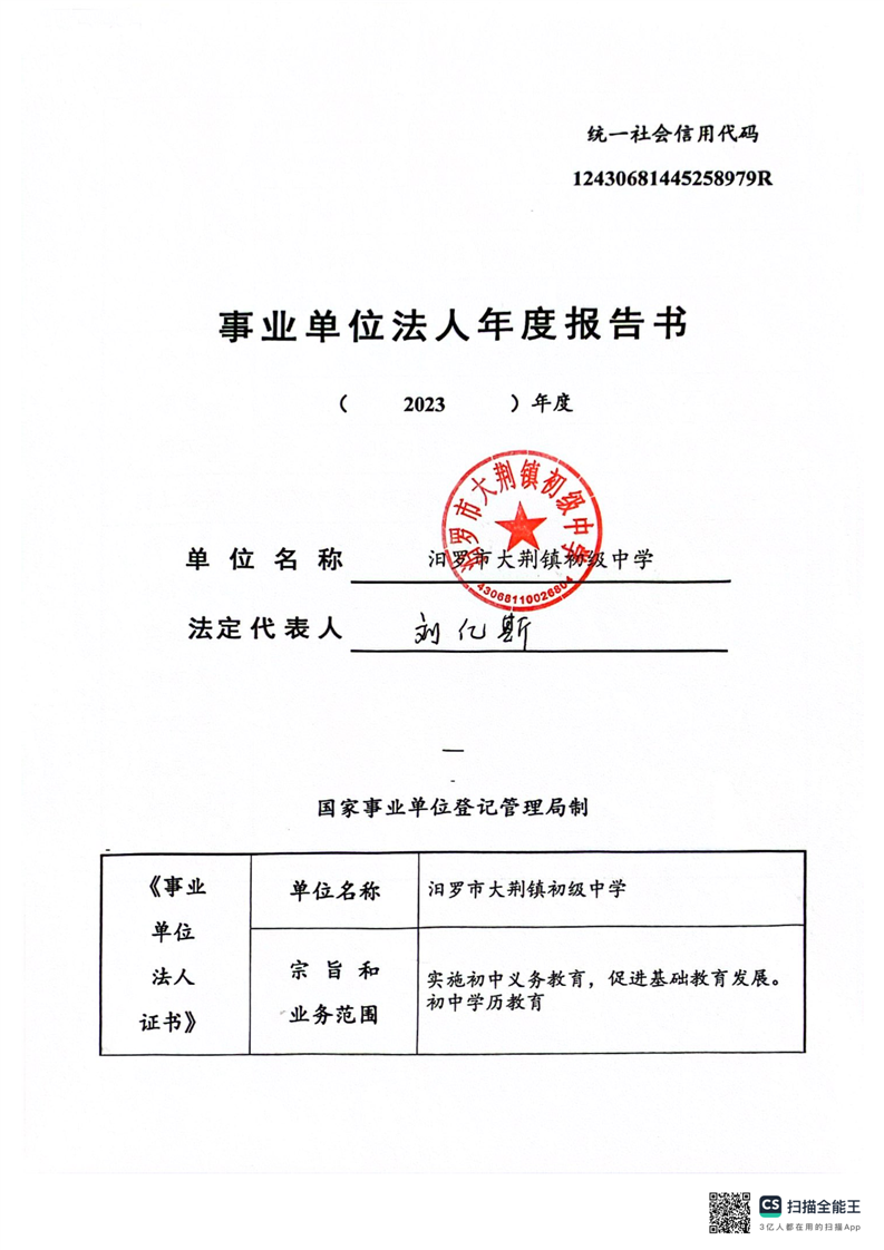 汨罗市大荆镇初级中学事业单位法人年度报告书