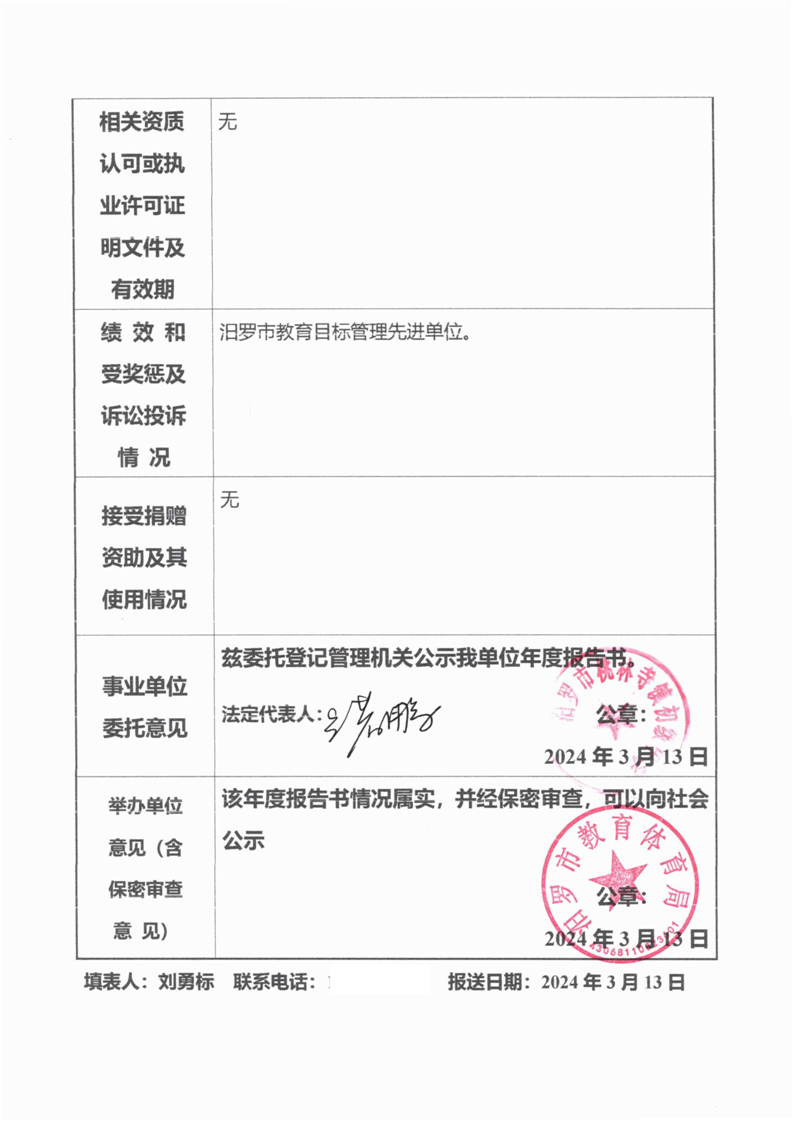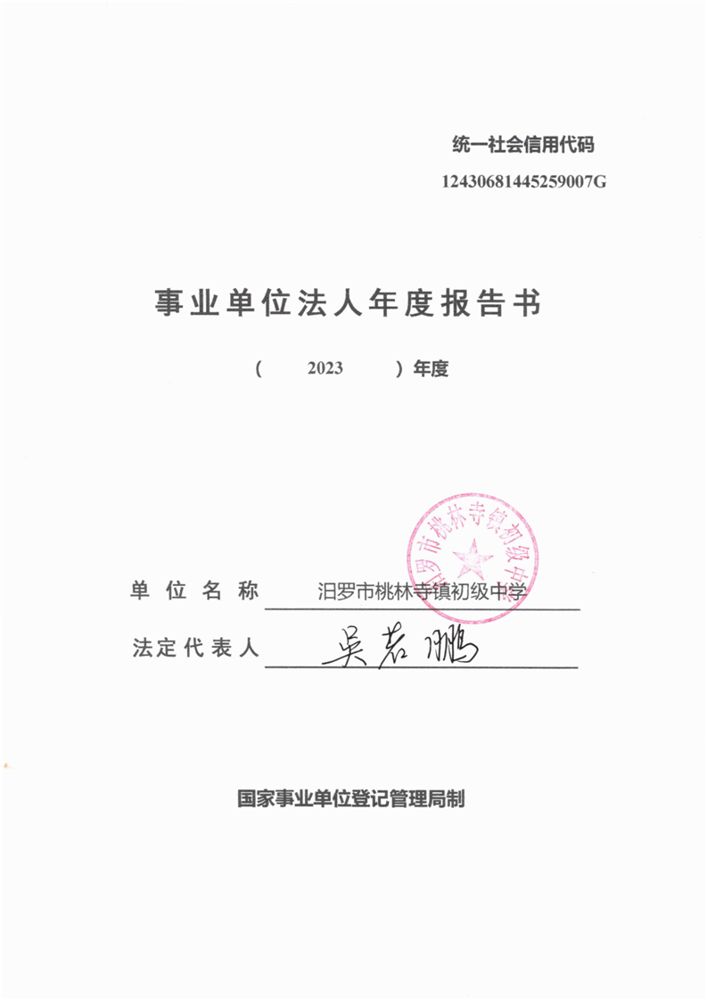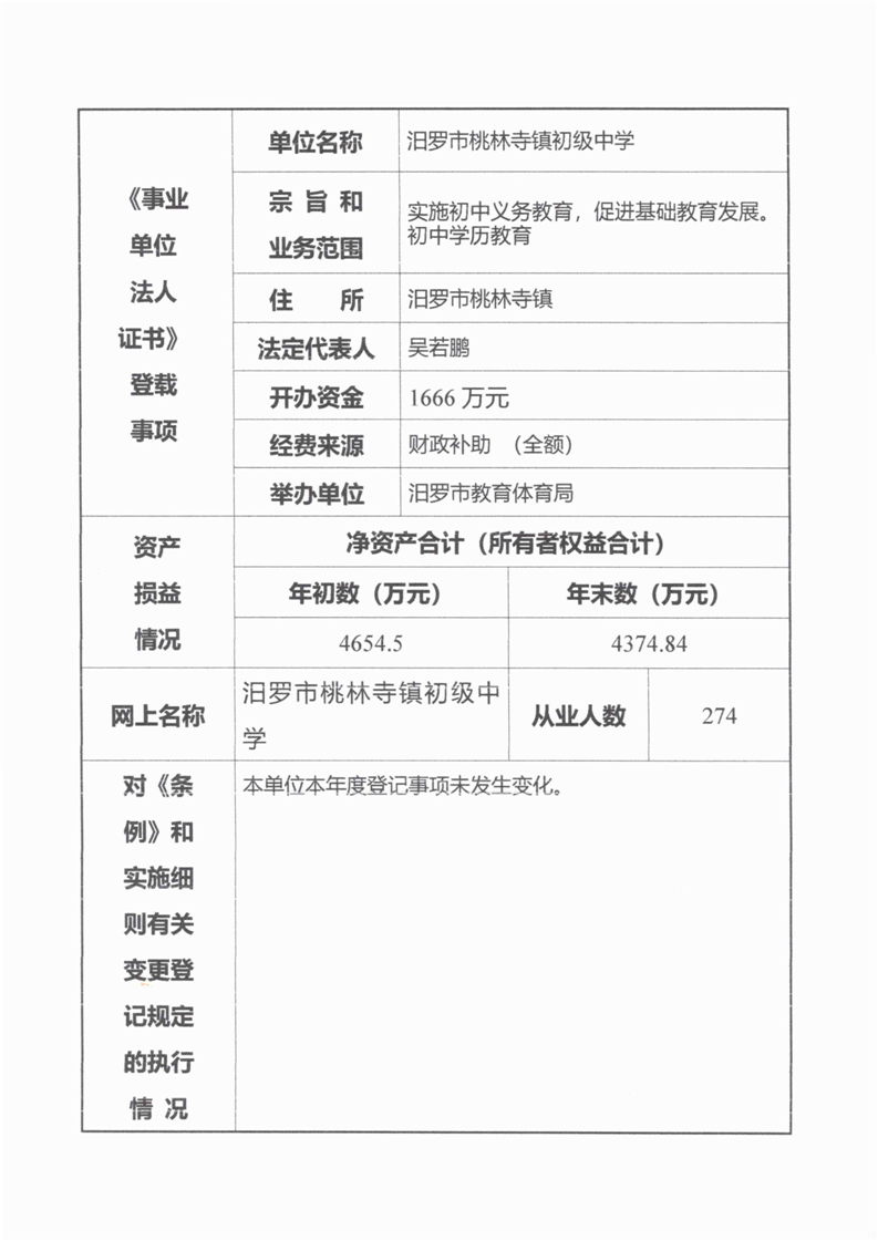 汨罗市桃林寺镇初级中学事业单位法人年度报告书