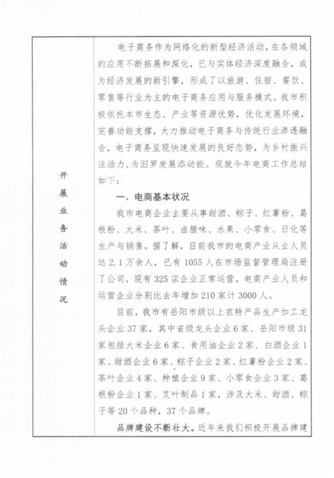 汨罗市电子商务事务中心事业单位法人年度报告书