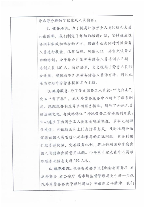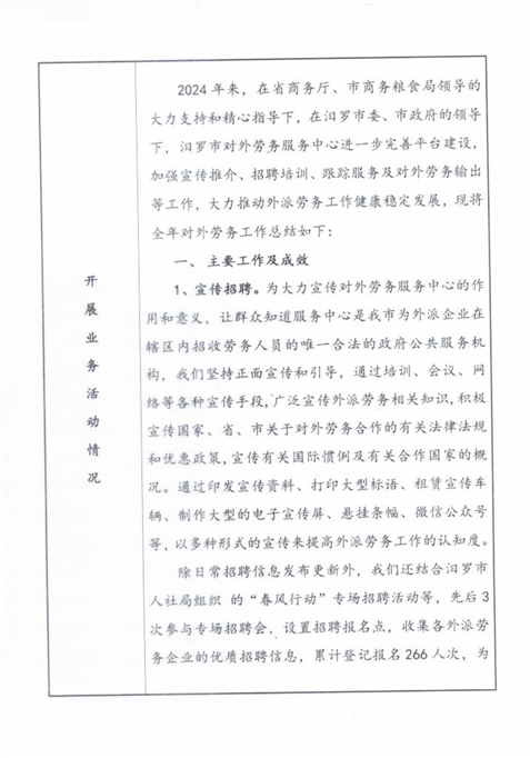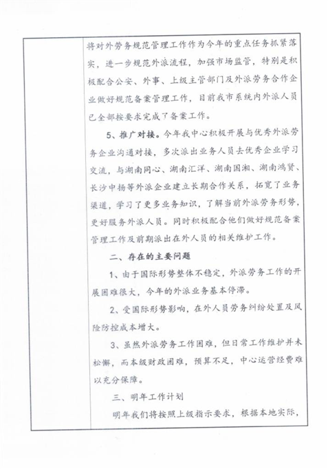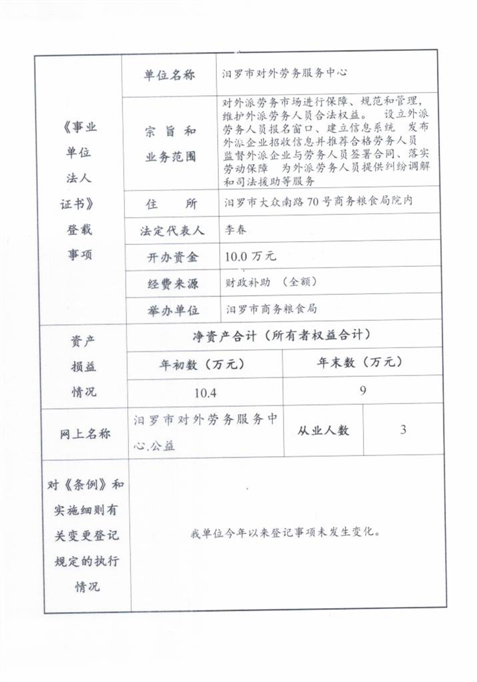 汨罗市对外劳务服务中心事业单位法人年度报告书