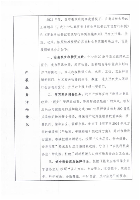 汨罗市粮食和物资储备服务中心事业单位法人年度报告书