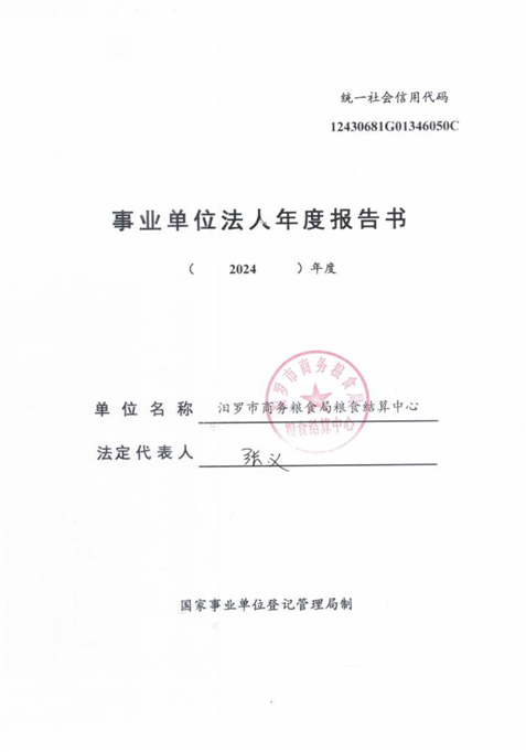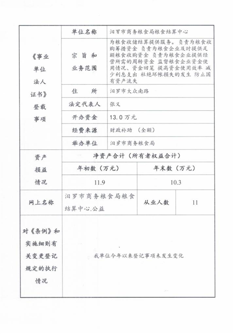 汨罗市商务粮食局粮食结算中心事业单位法人年度报告书