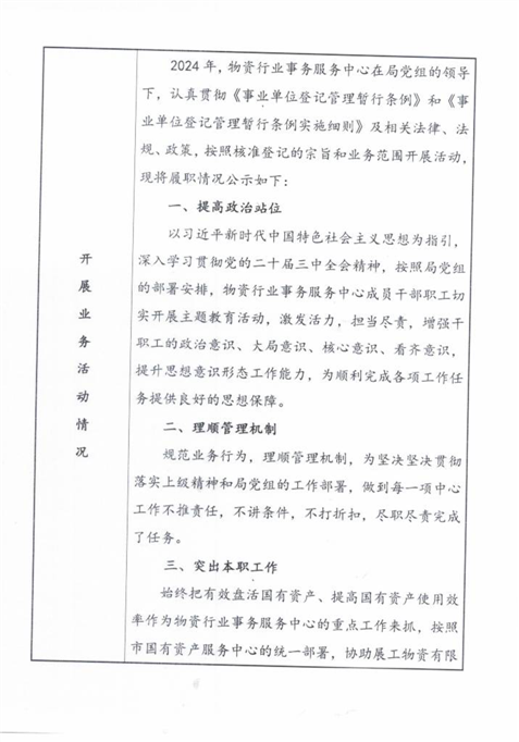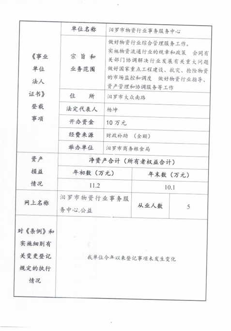 汨罗市物资行业事务服务中心事业单位法人年度报告书