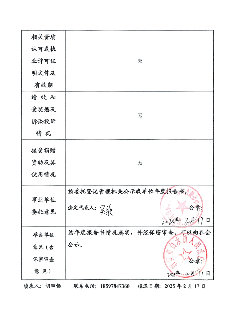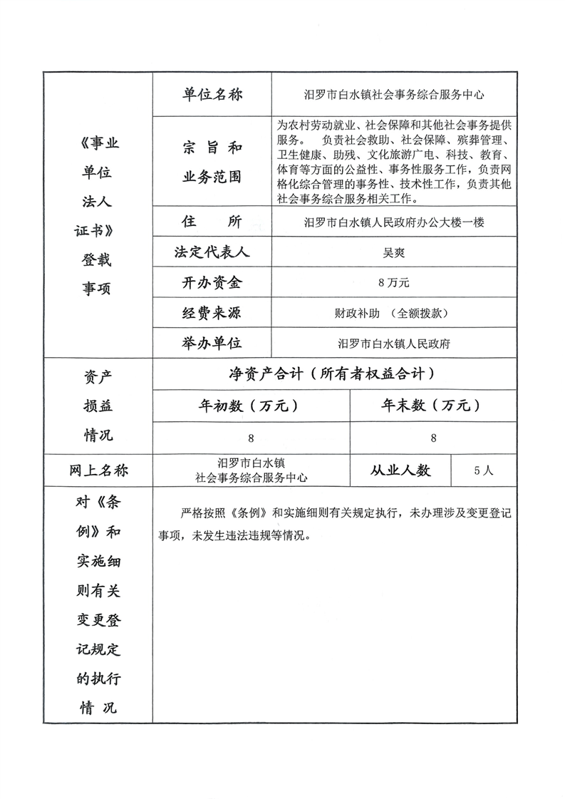 事业单位法人2024年度报告书(白水镇社会事务综合服务中心)