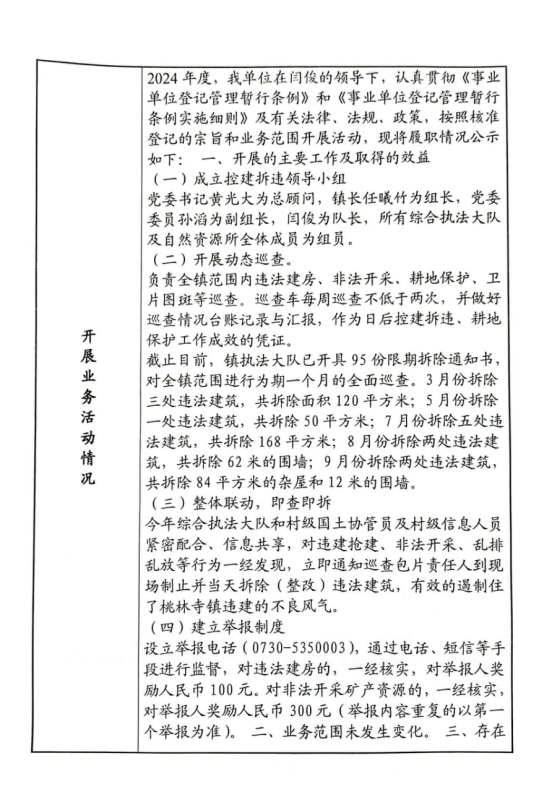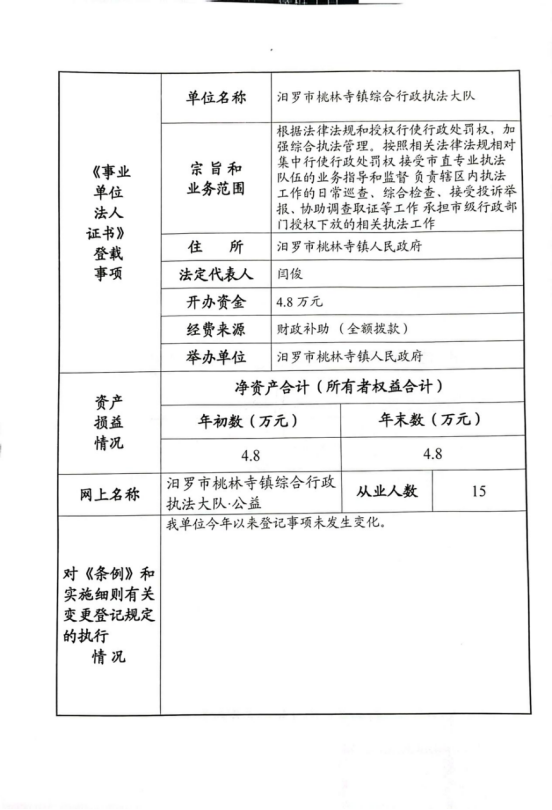 汨罗市桃林寺镇行政综合执法大队法人年度报告书