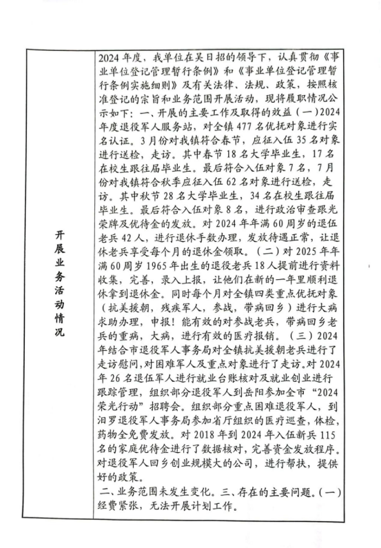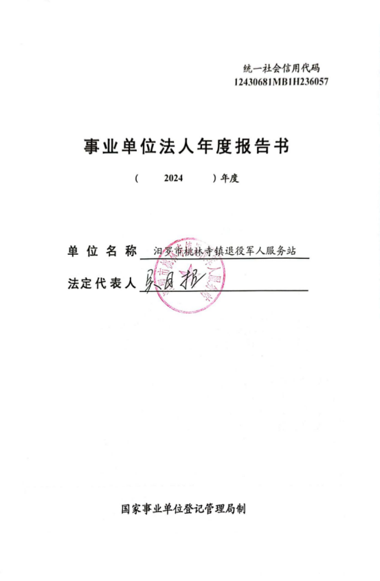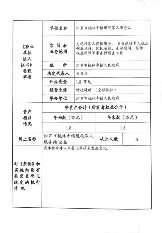 汨罗市桃林寺镇退役军人服务站法人年度报告书