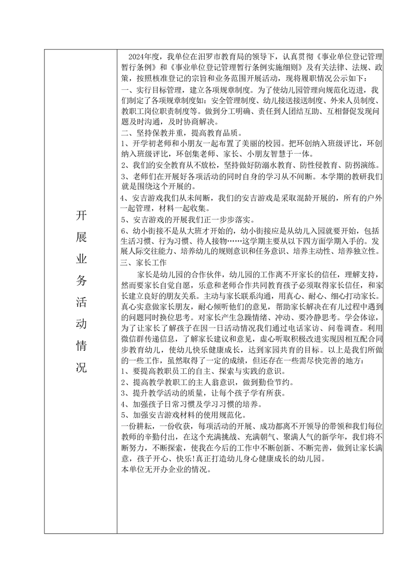 2024年汨罗市屈子幼儿园事业单位法人年度报告书