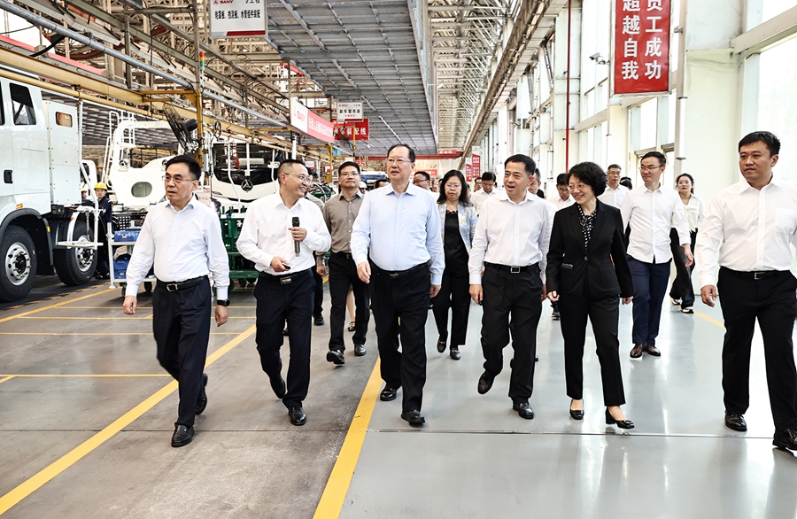 毛伟明一行走进邵阳经开区的湖南富兰地工具公司,作为一家湘商回归企业,公司通过数字化改造提升生产效率,可年产1800万支精密切削刀具,获评国家级专精特新“小巨人”企业。毛伟明为企业选择湖南、快速成长感到高兴,希望企业更加专注细分市场、专业分工,走“专精特新”发展之路,成长为行业“隐形冠军”。要当好湘商回湘的“代言人”,积极开展以商招商、产业链招商,吸引更多上下游企业聚集。三一专汽公司是全球最大的工程搅拌车生产基地,连续5年产值破百亿元,被评为国家制造业单项冠军企业。毛伟明鼓励企业充分发挥龙头引领支撑作用,集聚先进要素、加强研发创新,进一步补链延链强链、做大产业规模,推动产业集群发展。