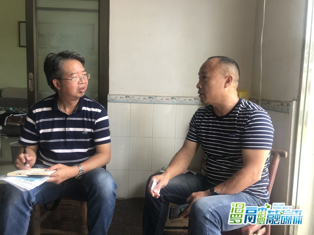 2020年端午节期间,江立云(左)回乡广泛开展乡村振兴调研时与白水镇西长村党总支书记胥献军交流