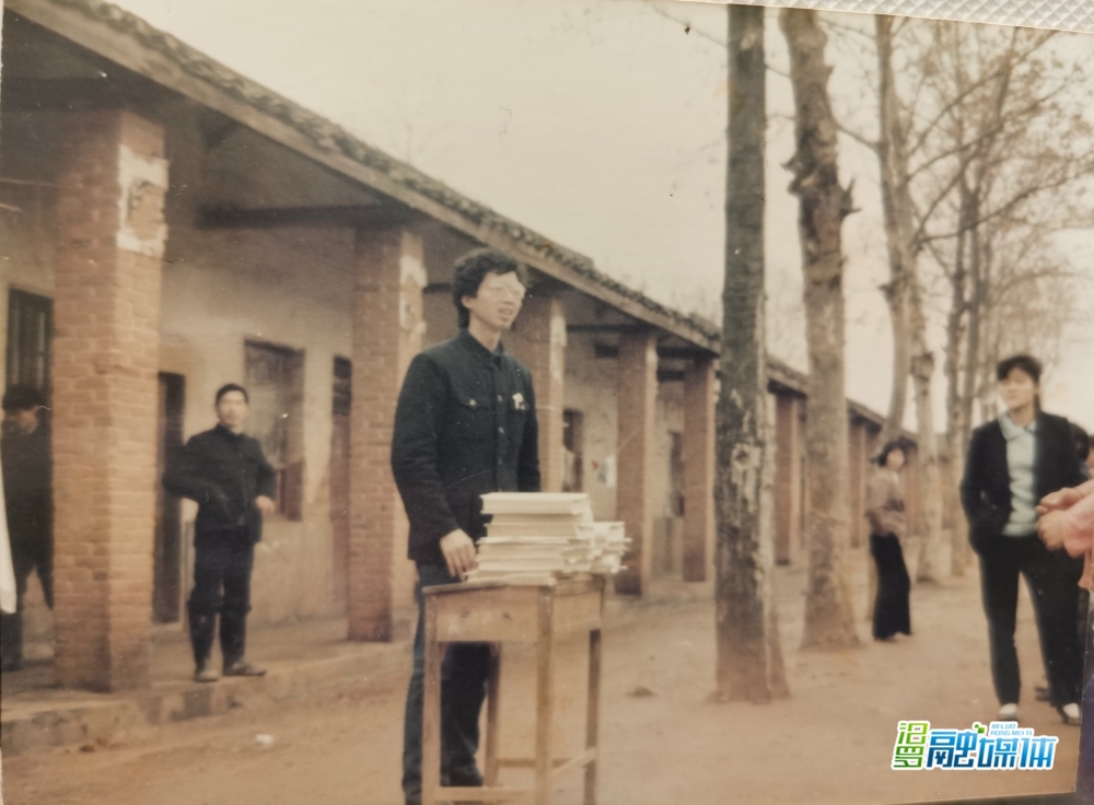 1990年1月,江立云在家乡组织开展“希望工程冬令营(长春地质学院水工系团委)”活动。图为江立云在新市花圃祠中学师生大会上发表演讲。