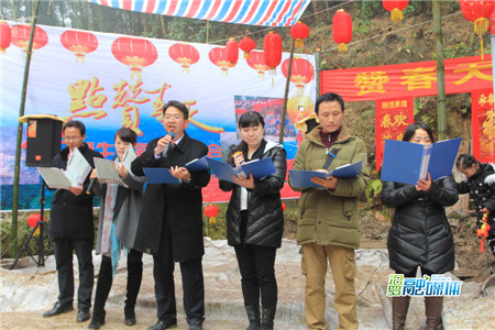 2015年春节期间,江立云在家乡策划组织“点赞春天”文艺活动。图为江立云参与诗朗诵节目。