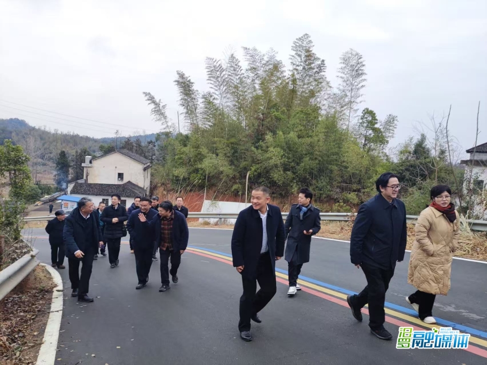 2025年1月26日,汨罗部分智库专家到新市街道、元福村考察调研。图为江立云陪同智库专家登团螺山。
