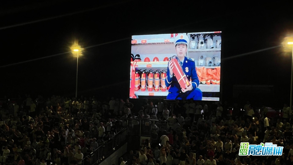 比赛间隙,现场大屏幕播放起消防宣传片,向群众普及高层建筑逃生知识、常见灭火器材使用方法。此外,“蓝朋友” 们还开展了消防知识快问快答街头采访活动,提出“油锅起火应该用热水还是冷水灭火?”“发生火灾时候,乘坐电梯时,电梯突然下坠应该保持什么姿势?” 等问题,吸引现场群众踊跃参与。