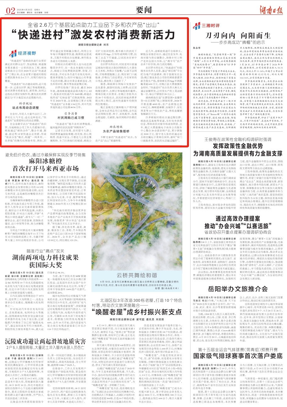 汨罗经验推广到全省。截至2024年底,湖南邮政建成县级共配中心82个,配备农村投递汽车2689辆,邮递沿线形成“毛细血管”式物流网络。2022年至2024年底,全省邮政已累计实现快递进村业务量3.94亿件,其中代投其他快递公司包裹8034万件。