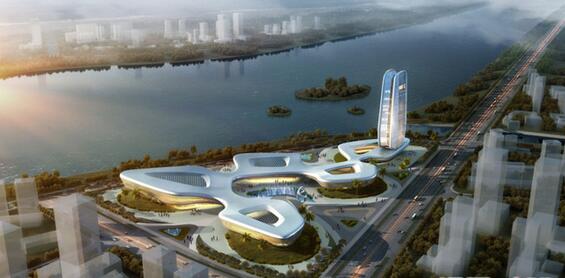 汨罗市文化与艺术中心规划设计鸟瞰图(效果图)