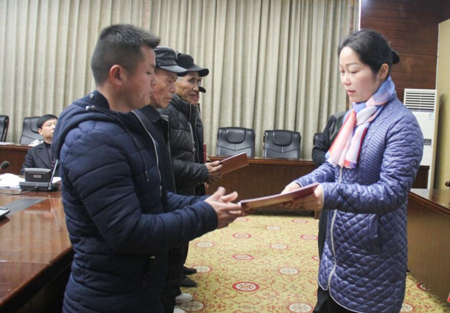 会上,陈岭华给桃林寺镇赤卫村裕厚片1、2组农户代表颁发了农村土地承包经营权证书。