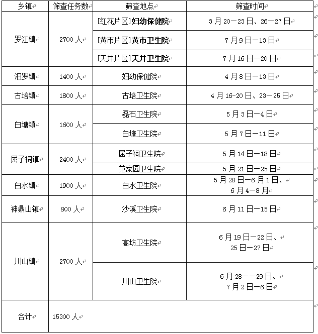 附:2018年汨罗市农村妇女两癌筛查工作计划及时间表